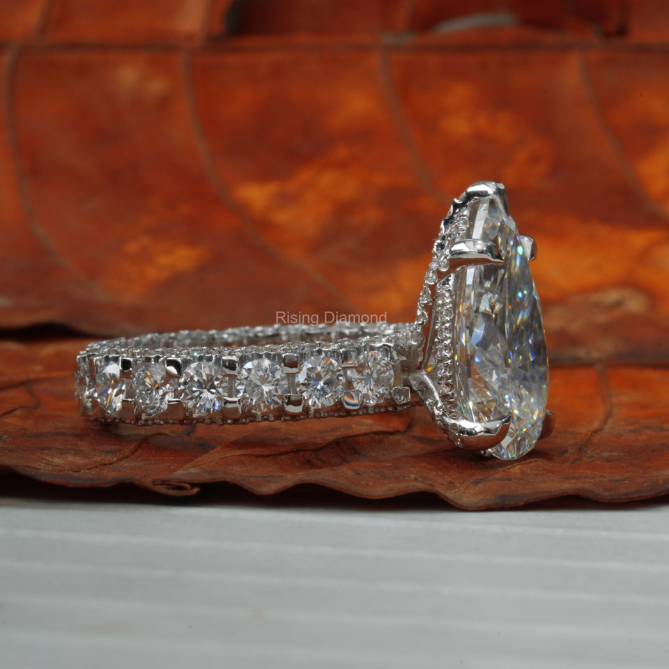 แหวนหมั้นเพชรเม็ดแพร์ขนาด2.25 CT ประดับเพชรที่โตแล้วชุดของขวัญครบรอบแต่งงานวงแหวนแต่งงานสำหรับเธอ
