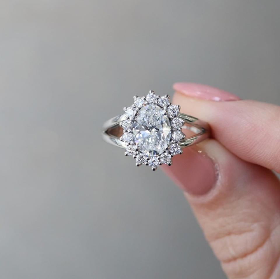แหวนหมั้นเพชรโมอิสทรงรีตัด2.26 CTW พร้อมรัศมี925แหวนแต่งงานสีเงินสเตอริง VVS2 2.26 CTW เพชรโมอิสซาไนต์ทรงรีตัด