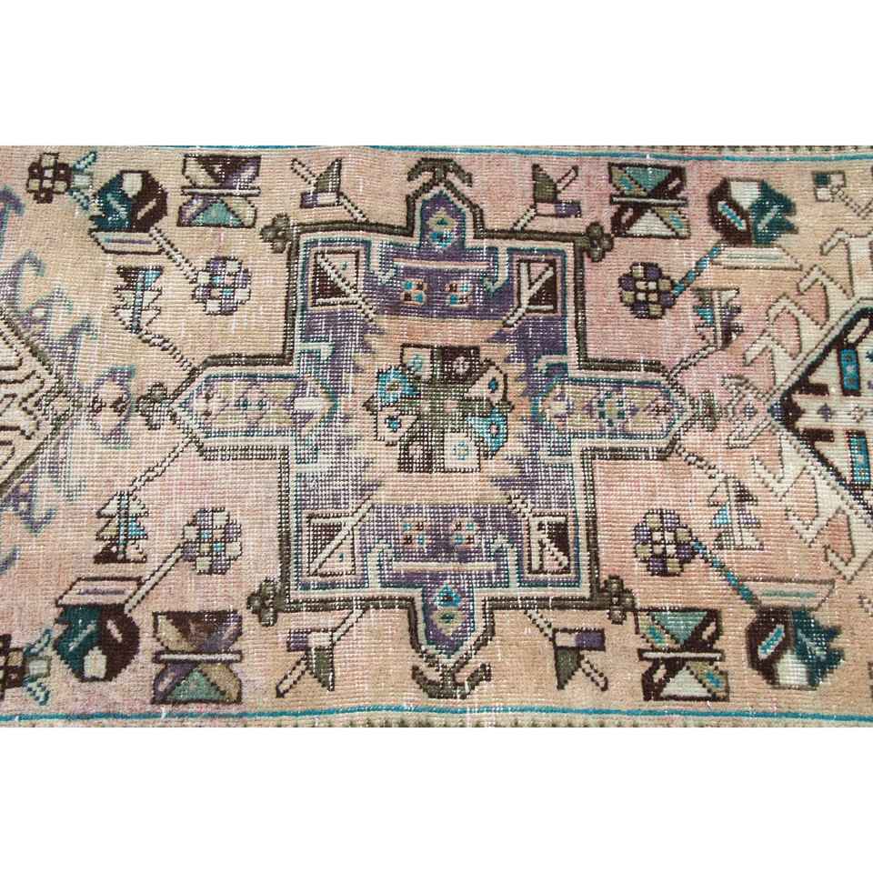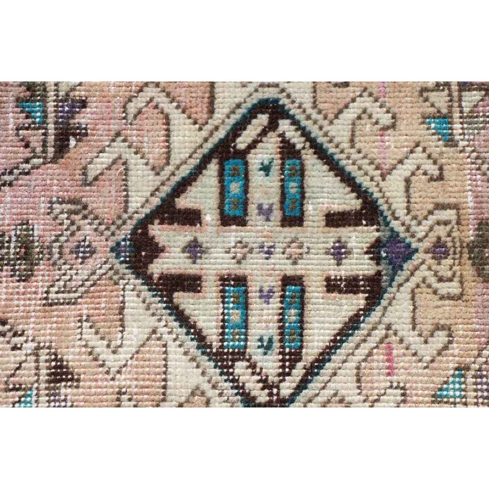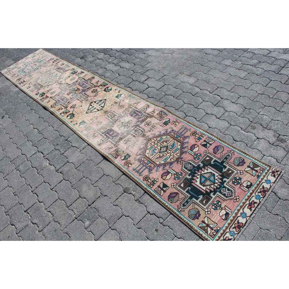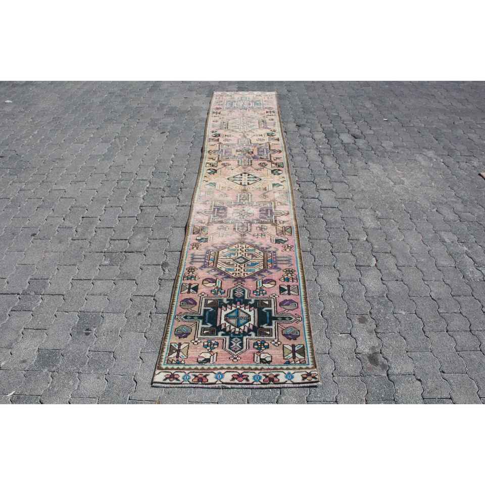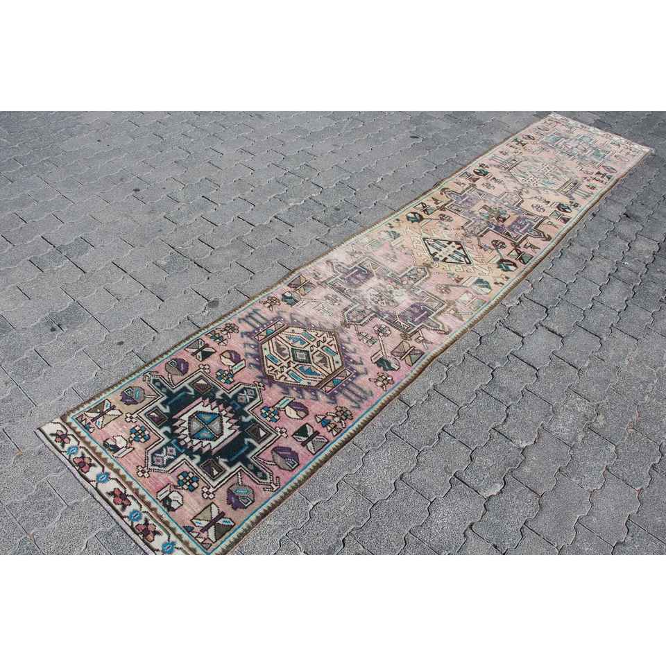 พรมวินเทจตุรกีลายปะติดปะต่อ ขนาด 2.2x12 ฟุต พรมวูลปูพื้นแบบมีแผ่นรองลาเท็กซ์รักษ์โลก สีชมพู