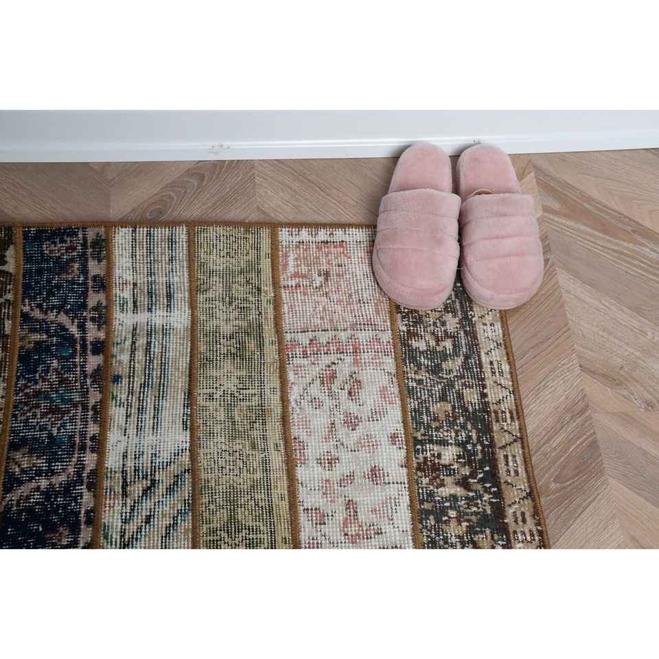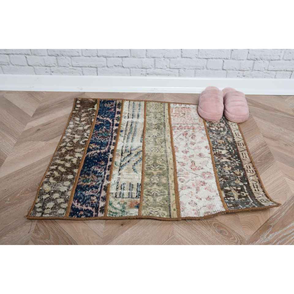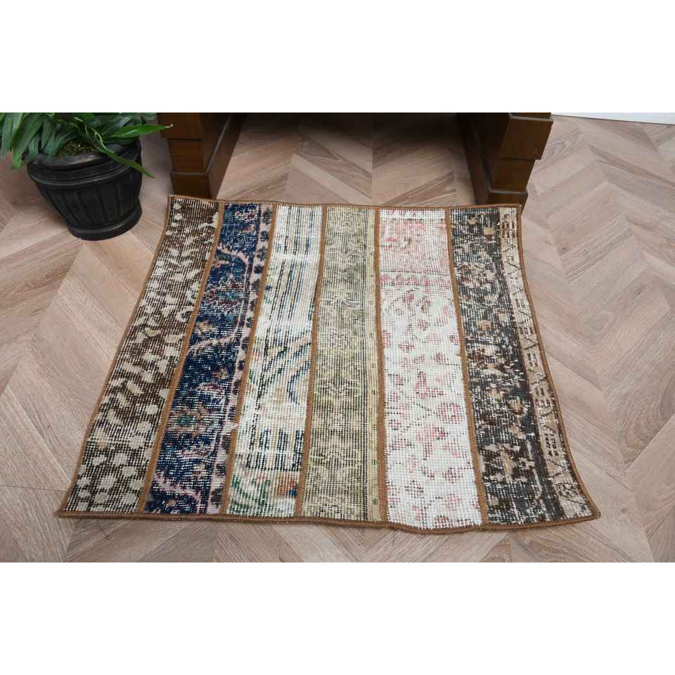 พรมวินเทจตุรกีขนาด 2.2x2.3 ฟุต พรมขนาดเล็ก พรมขนสัตว์สีน้ำตาล