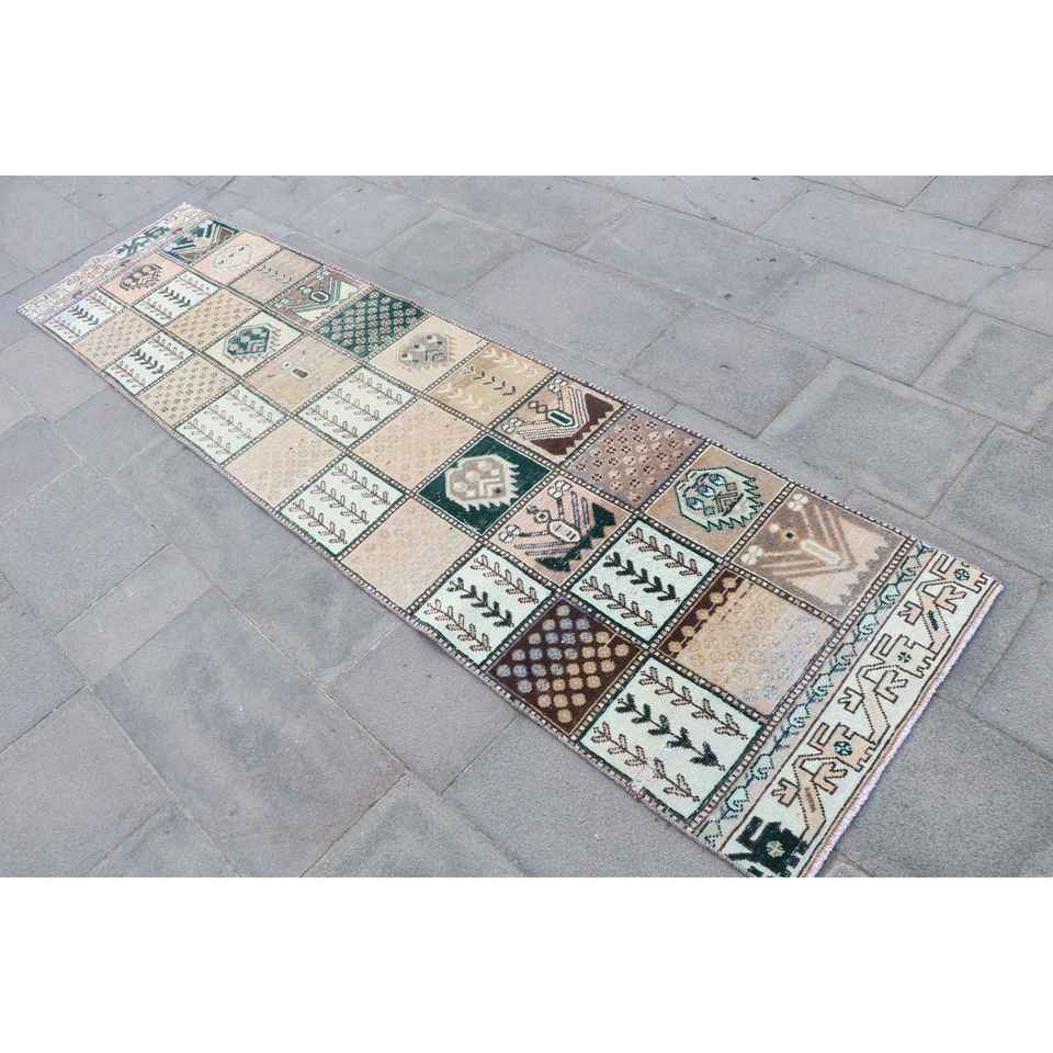 พรมขนาด 2.2x8.7 ฟุต, พรมวินเทจแบบ Runner, พรมลายปะติดสีน้ำตาล