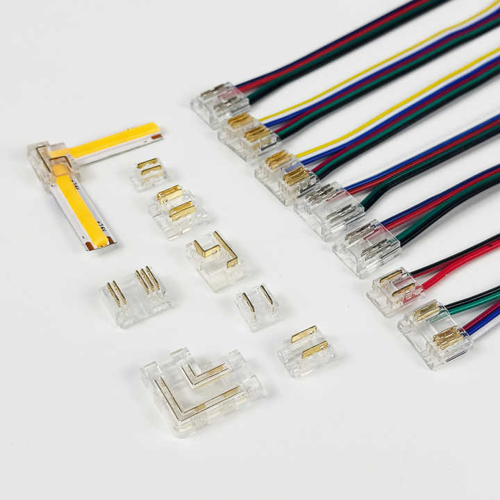 ขั้วต่อสายไฟ LED แบบ 2/3/4/5/6 พิน IP20/IP65 เคลือบกาวด้านเดียว สำหรับขนาด 5 มม.-12 มม. สำหรับไฟ LED COB Strip Light และไฟ LED Strip