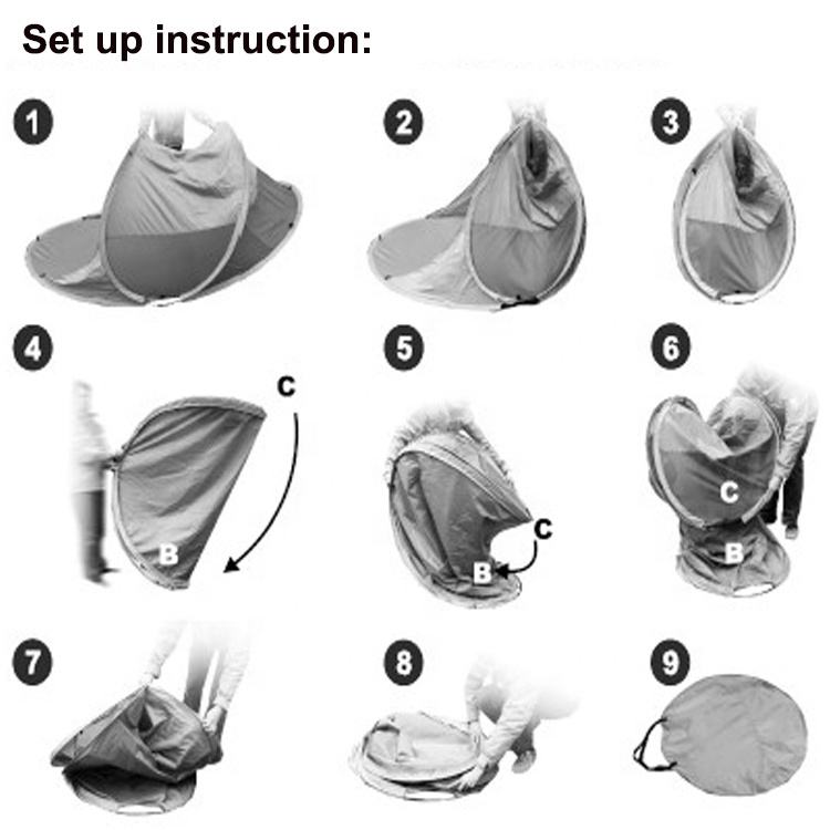 เต็นท์ชายหาดแบบป๊อปอัพสำหรับ 2-3 คน ที่กันแดดและร่มเงา เต็นท์ชายหาดแบบพกพาสำหรับครอบครัวและที่กันแดด