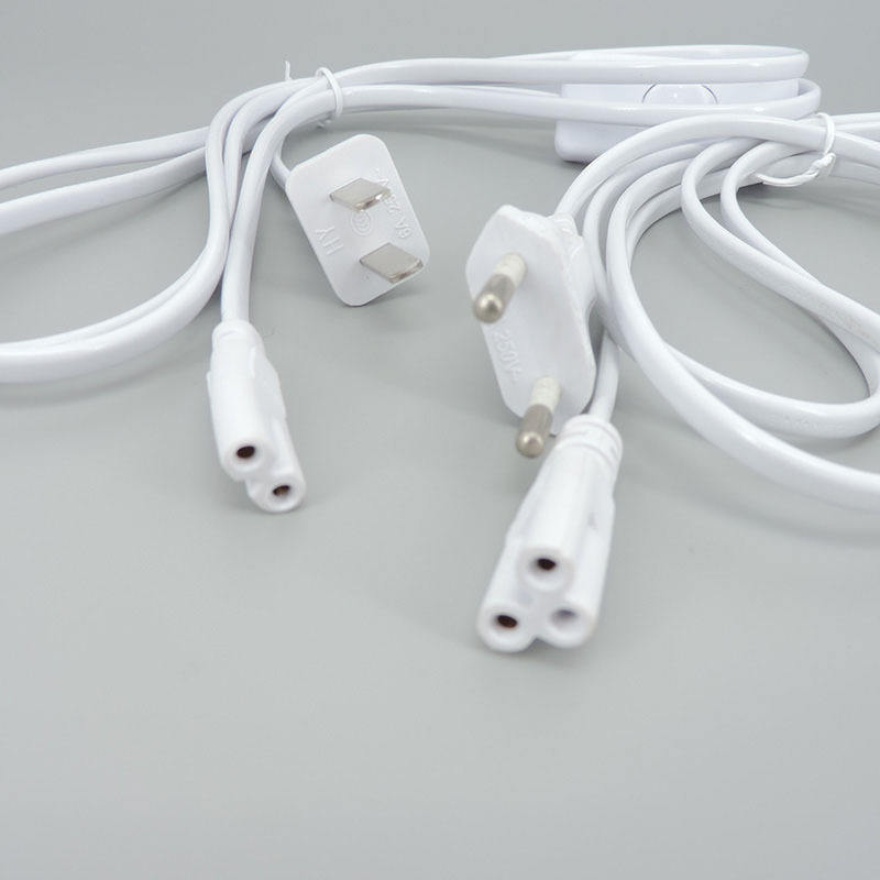 สายต่อไฟหลอดไฟ LED T5 T8 แบบ 2 3 ขา พร้อมสวิตช์เปิด/ปิด สำหรับชาร์จไฟ พร้อมหัวต่อแบบ EU/US สำหรับใช้ในบ้าน