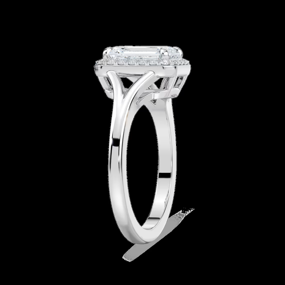แหวนหมั้นเพชรทรงมรกต 2.10 กะรัต ผลิตในห้องปฏิบัติการ ได้รับการรับรองจาก IGI ตัวเรือนทองคำแท้ 14k แบบแหวนแยกชั้นประดับเพชรแบบฮาโล
