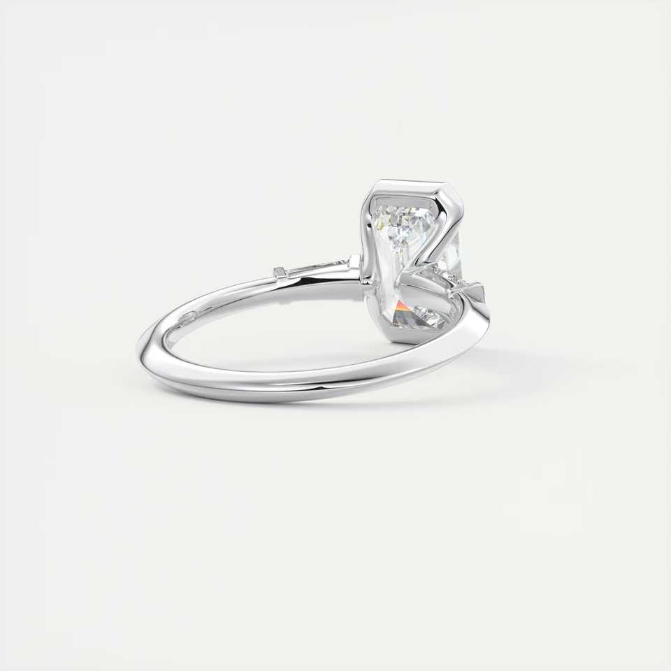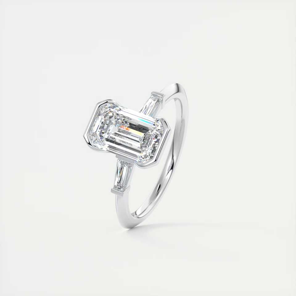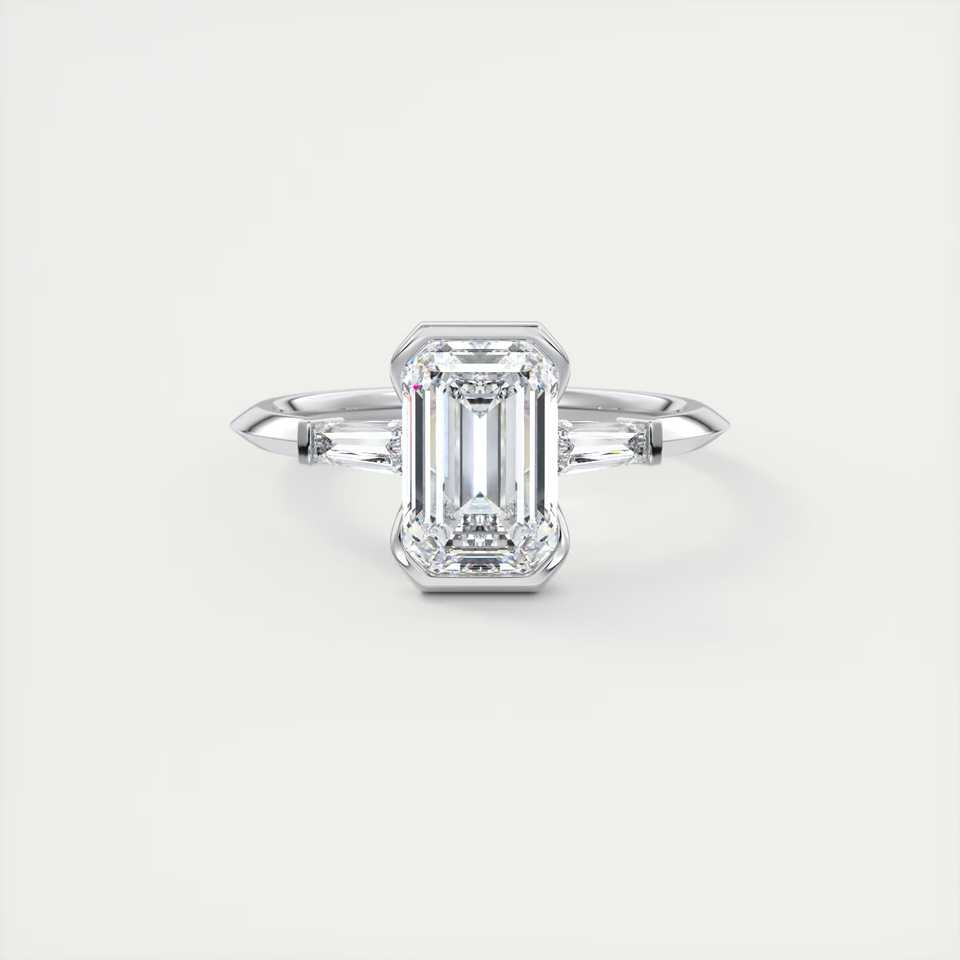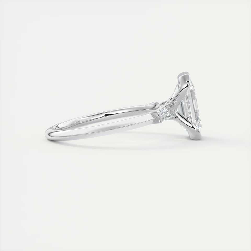 แหวนหมั้นเพชรทรงเหลี่ยมมรกต 2.30 กะรัต เพชรเลี้ยงในห้องปฏิบัติการ ขอบครึ่งวงกลม ประดับเพชรทรงบาแก็ตต์ด้านข้าง ทองคำขาว 14K