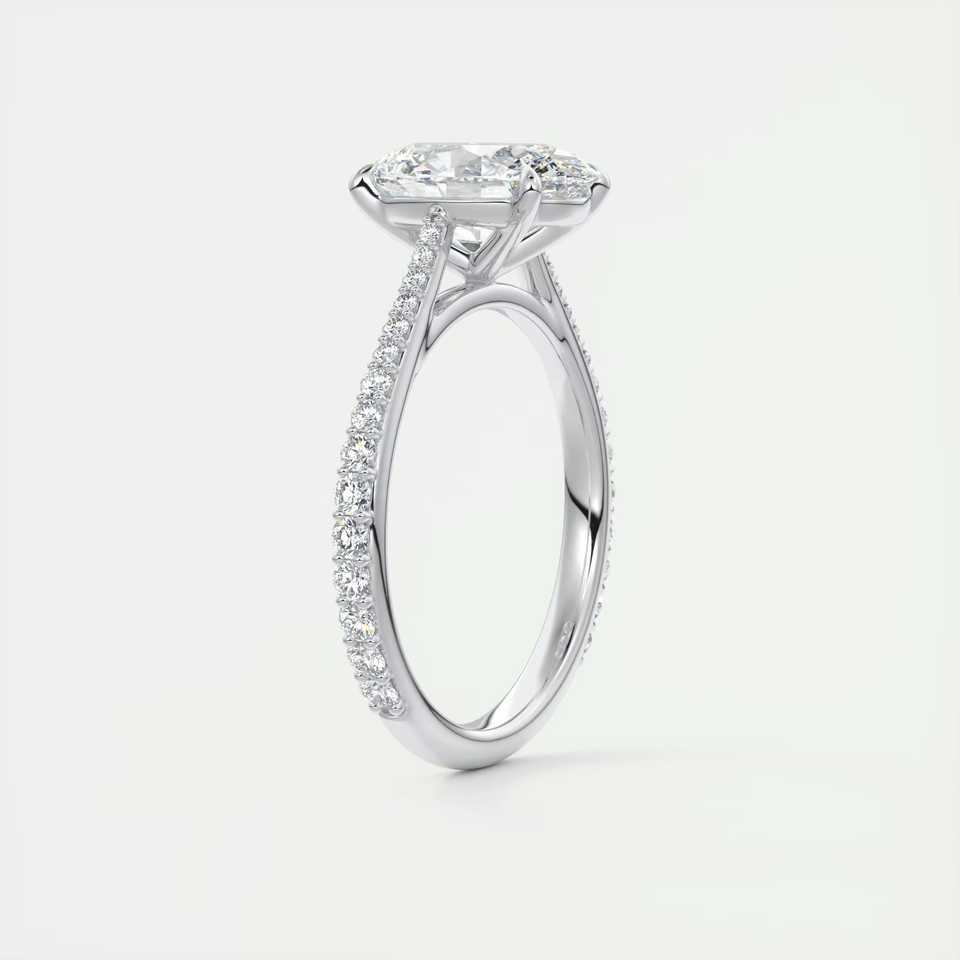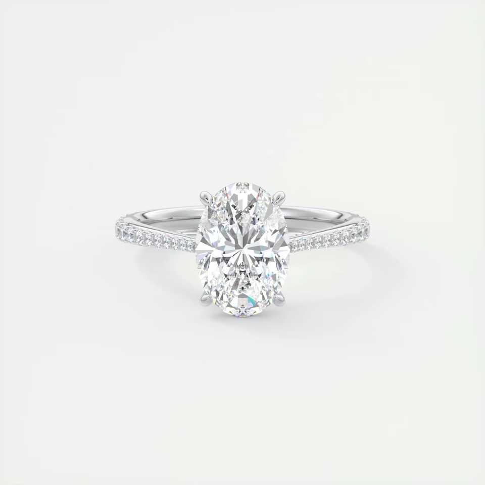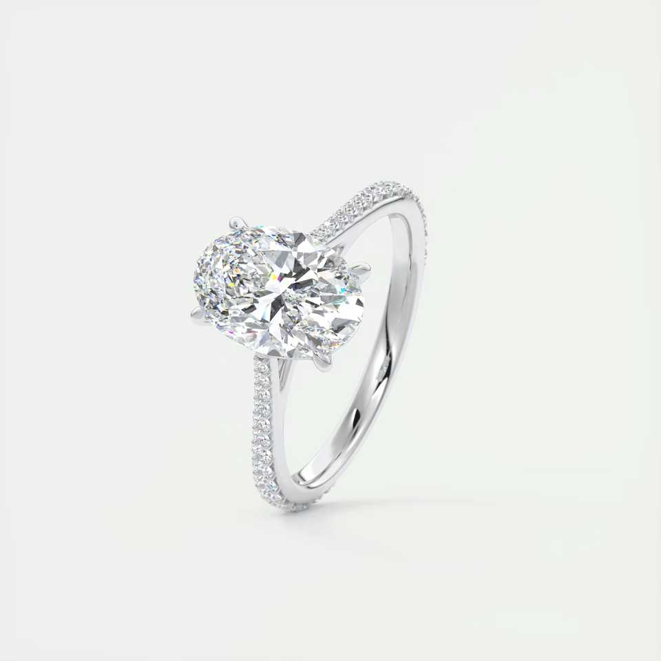 แหวนหมั้นเพชรทรงรี 2.30 กะรัต เพาะเลี้ยงในห้องปฏิบัติการ ประดับเพชรแบบพาเว่ บนตัวเรือนทองคำขาว 14K
