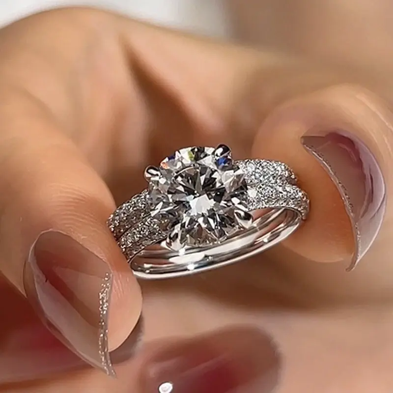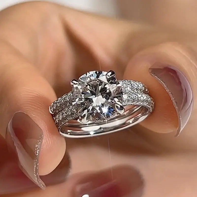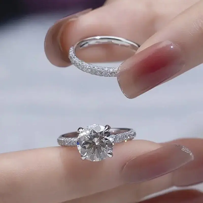 แหวนหมั้นเพชรโมอิสซาไนต์ทรงกลม 2.30 กะรัต ตัวเรือนเงินแท้ ชุบทองคำขาว 14k พร้อมตัวเรือนแบบหนามเตย
