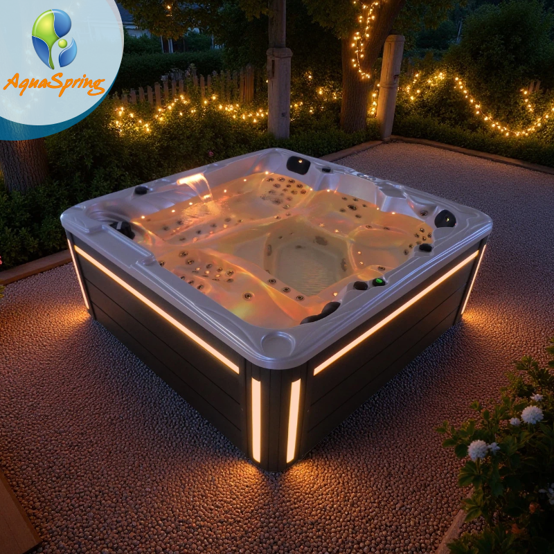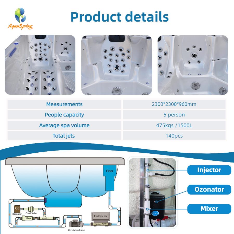 อ่างน้ำวนขนาด5ท่าน2.3ม. อ่างสปาอุ่นและอ่างน้ำร้อนอ่างอาบน้ำนวดแบบฝังกลางแจ้งพร้อมไฟ LED 43ดวง