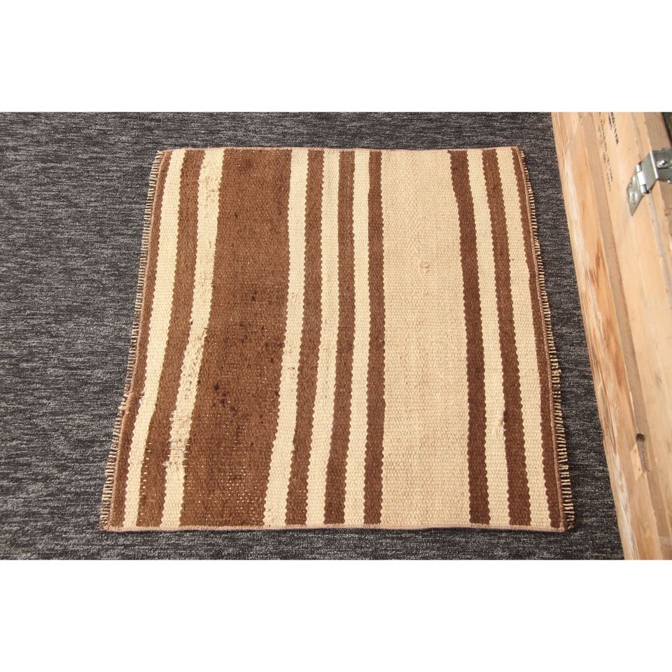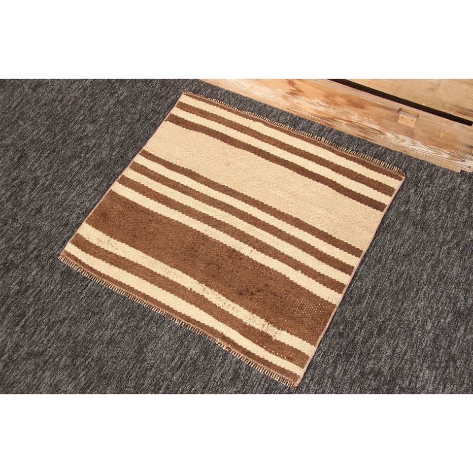 พรมวินเทจขนาด 2.3x2.1 ฟุต พรมตุรกีขนาดเล็ก พรมลายทางสีน้ำตาลเบจ
