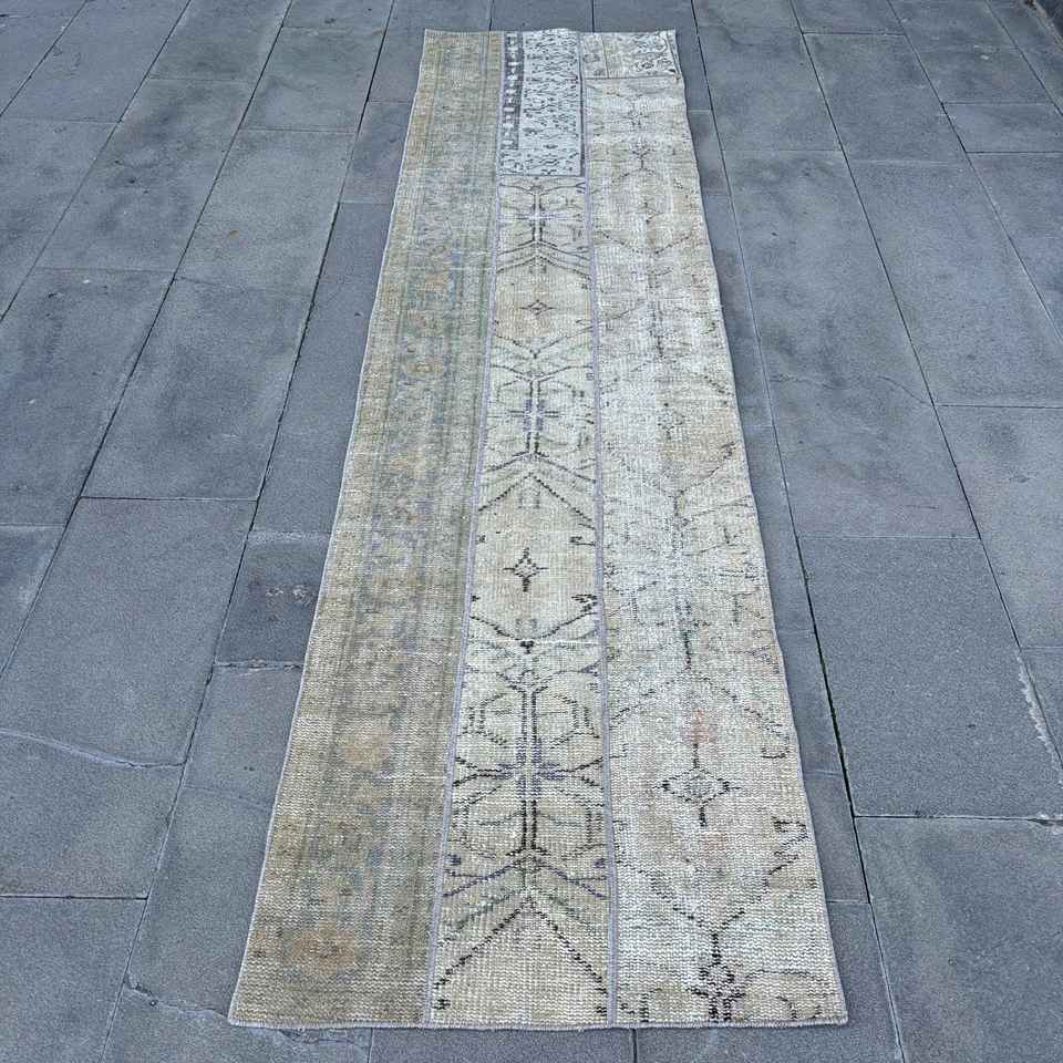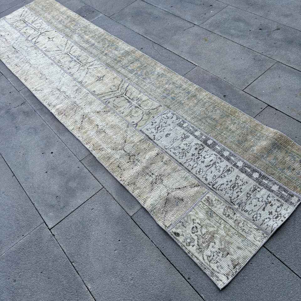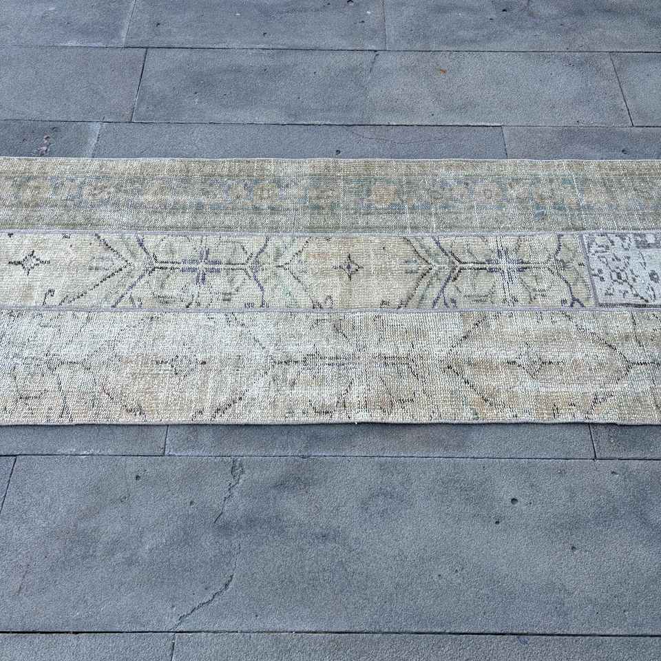 พรมตุรกีขนาด 2.3x9 ฟุต, พรมวินเทจแบบยาว, พรมลายจุดสีเทา-น้ำเงิน
