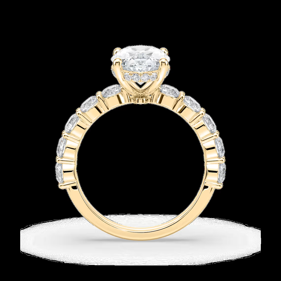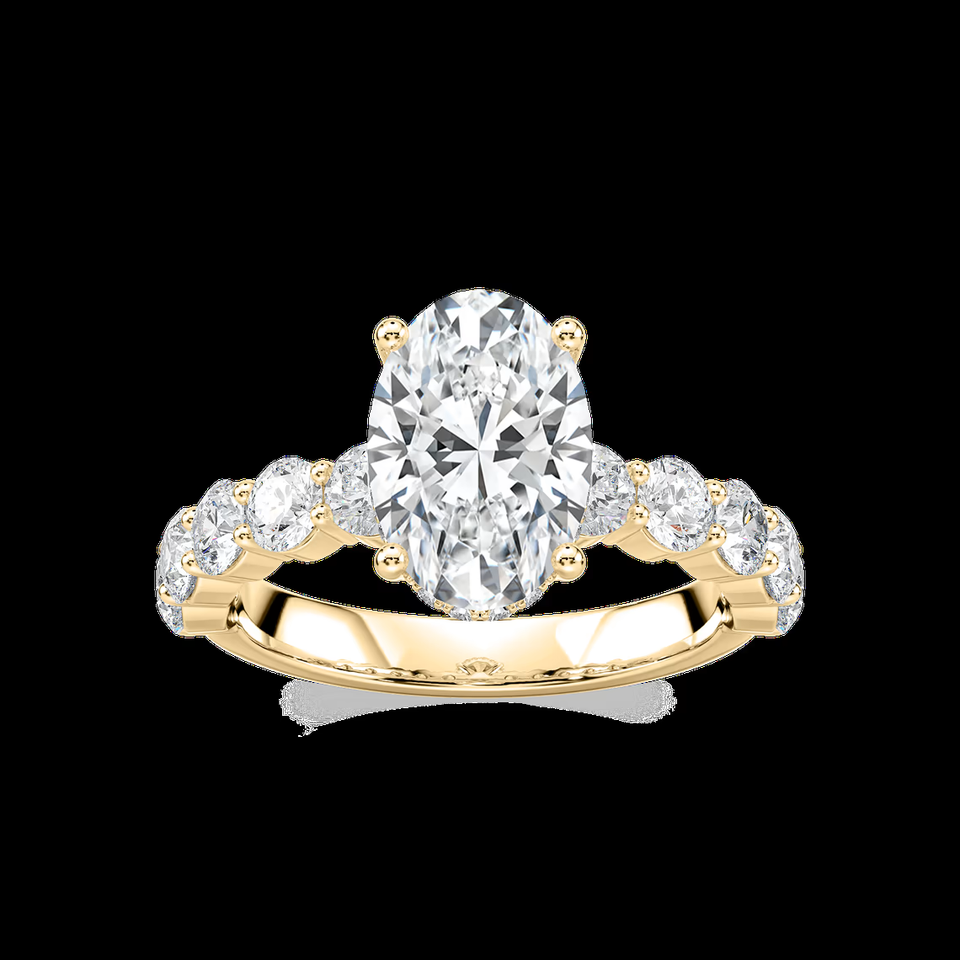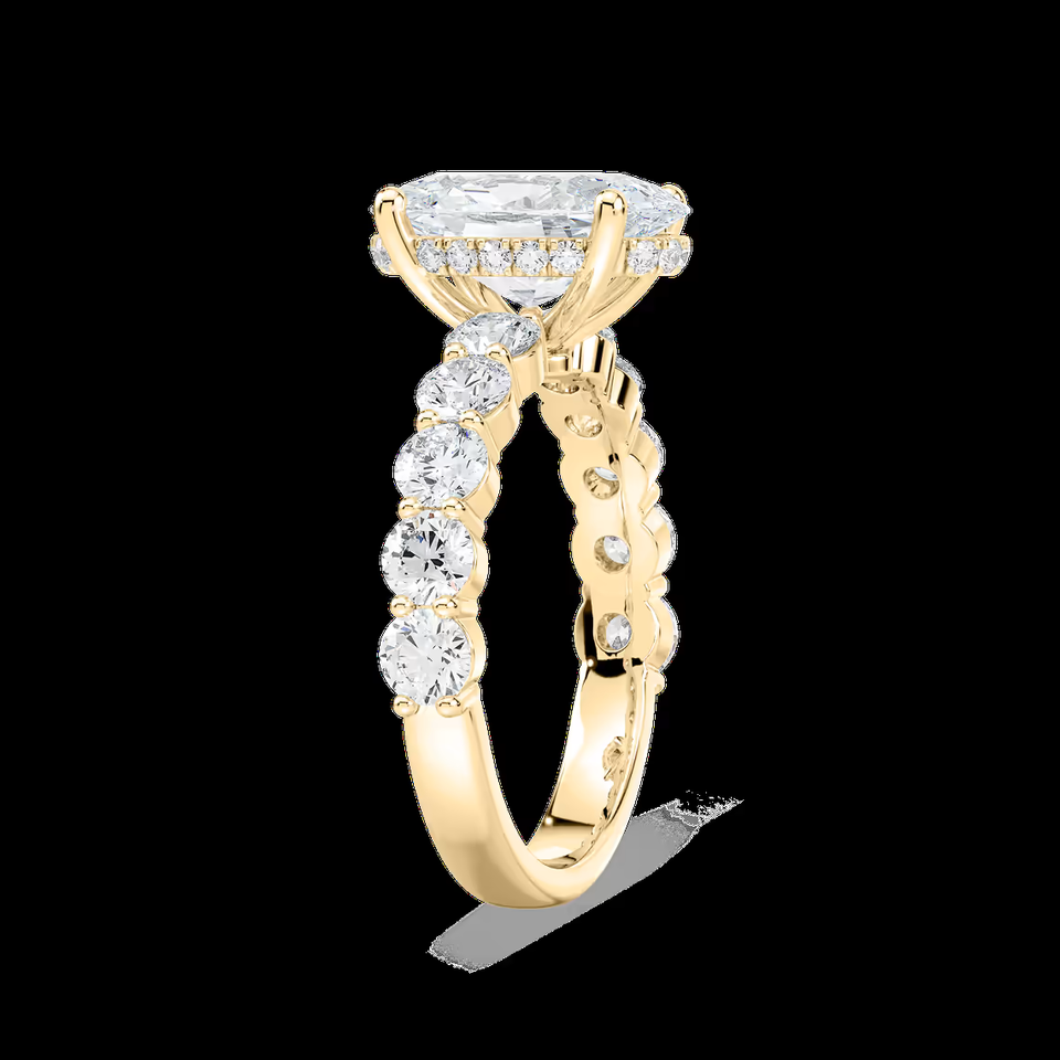 แหวนหมั้นเพชรทรงรี 2.40 กะรัต ผลิตในห้องปฏิบัติการ ประดับด้วยเพชรทรงกลมด้านข้าง ได้รับการรับรองจาก IGI ทองคำแท้ 14K แหวนแต่งงานสุดหรู