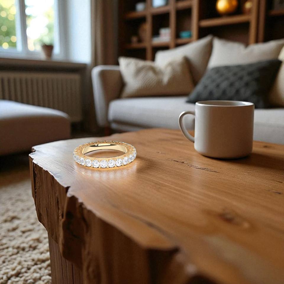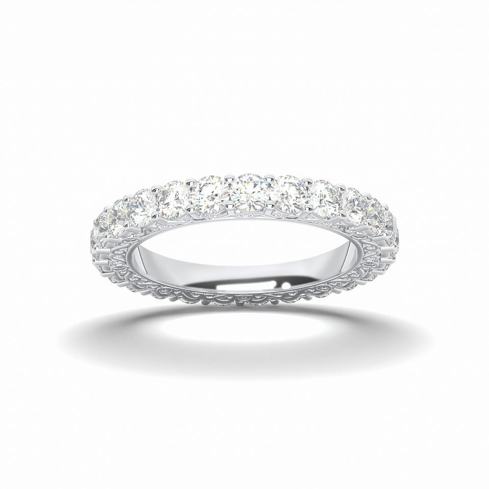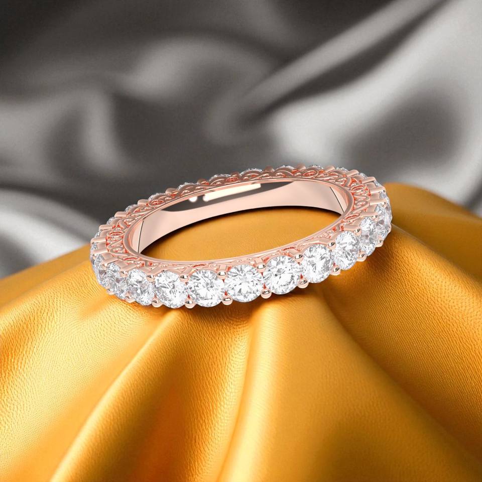 แหวนแต่งงานเพชรโมอิสซาไนต์ทรงกลม 2.48 กะรัต E-F/VSS-VS ประดับเพชรเต็มวง ทำจากทองคำแท้สำหรับผู้หญิง