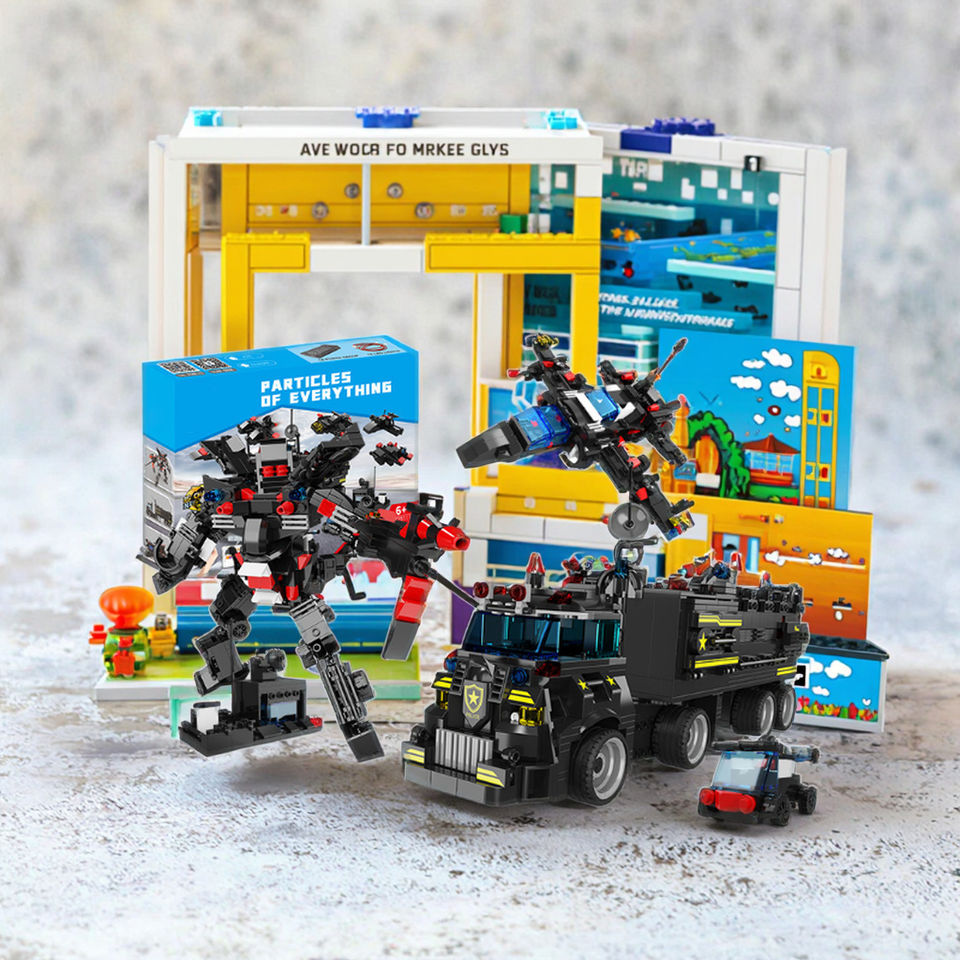 บล็อกตัวต่อรถตำรวจพิเศษพร้อมรีโมต2.4ก. ของเล่นแบบซ้อนโหมดไจโรสโคปเปลี่ยนแปลงได้สำหรับการเขียนโปรแกรมด้วยไอน้ำพลาสติก