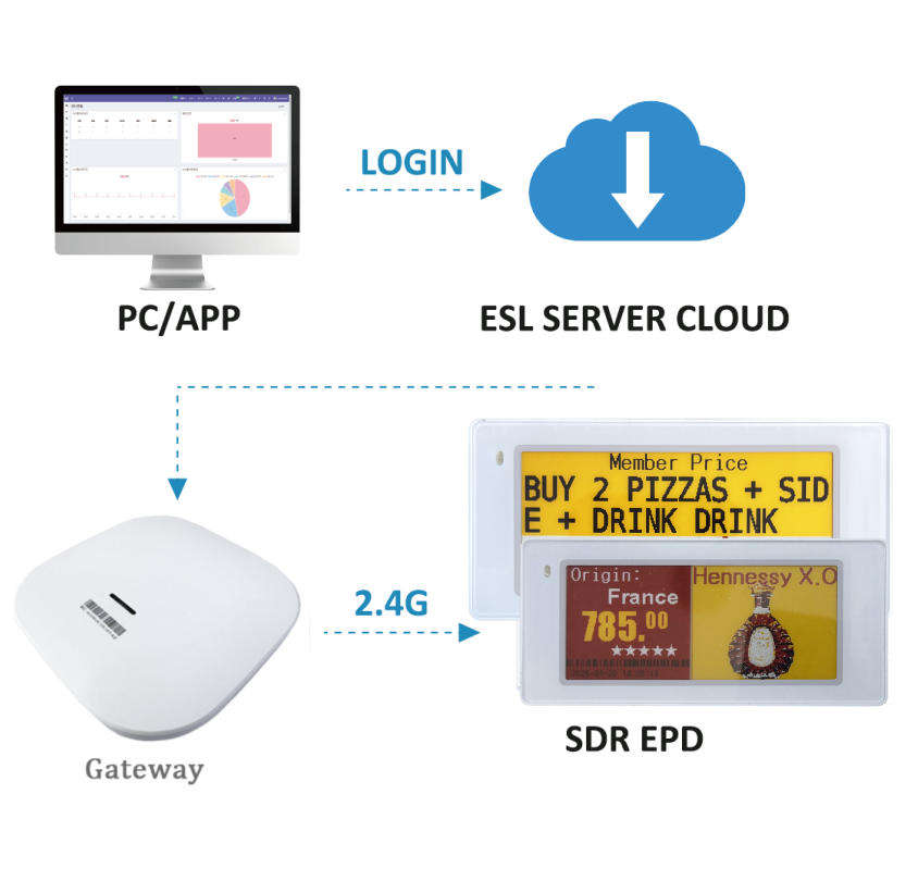 2.4กิกะเฮิร์ตซ์บลูทูธ BLE 5.0ป้ายอิเล็กทรอนิกส์ชั้นวาง Esp32 SPI epaper ซอฟต์แวร์ซอฟต์แวร์ API หิ้ง talkers ดิจิตอลป้ายราคา E Ink Display ESL