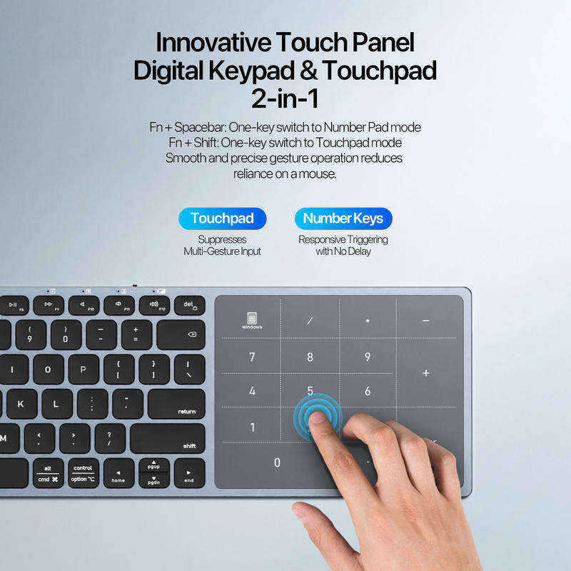 คีย์บอร์ดไร้สาย 2.4Ghz ทำจากอะลูมิเนียมอัลลอย พร้อมทัชแพดและปุ่มตัวเลข คีย์บอร์ดพกพาบางเฉียบ ใช้เป็นคีย์บอร์ดภายนอก