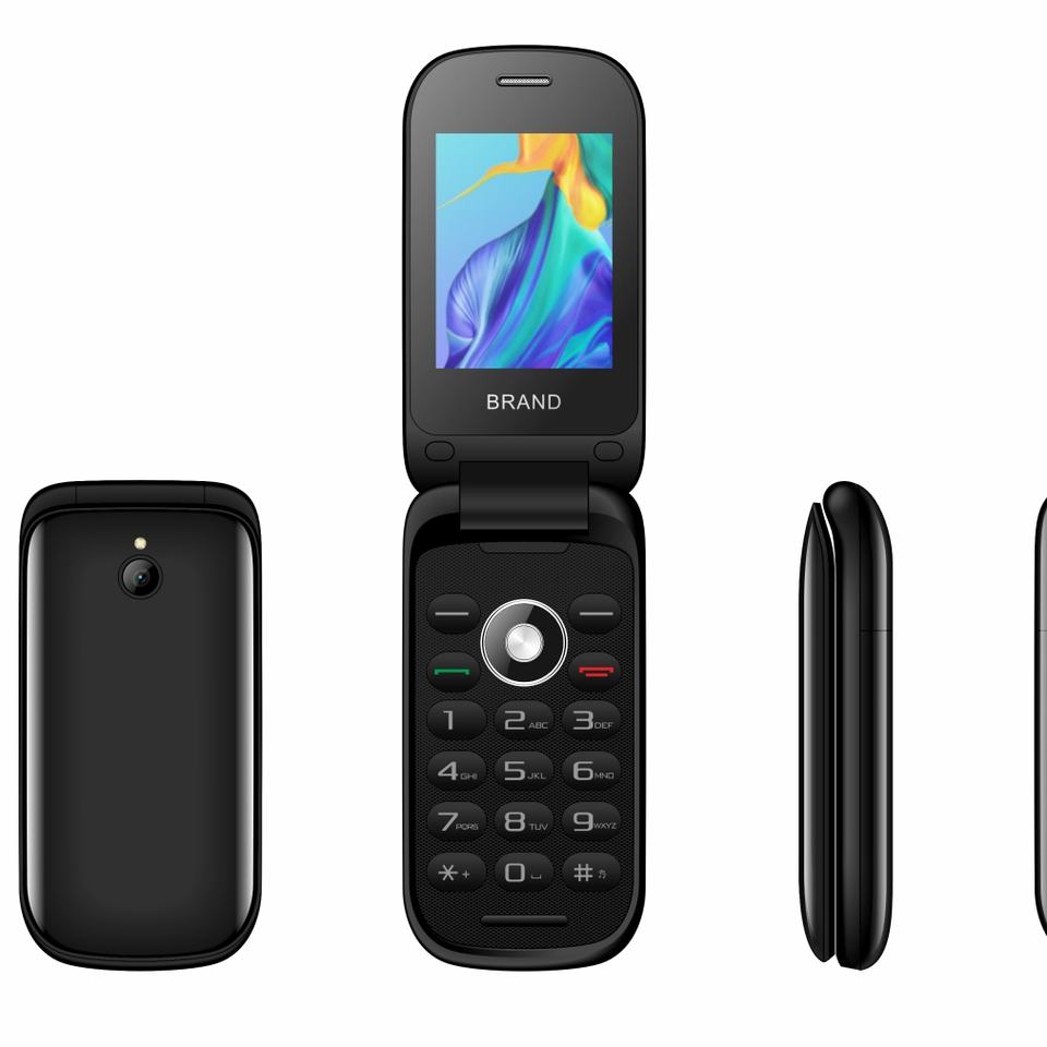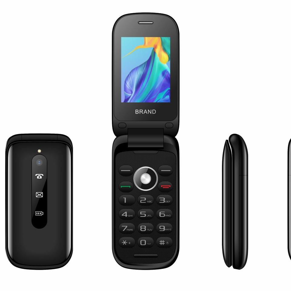 โทรศัพท์ฝาพับขนาด 2.4 นิ้ว โทรศัพท์มือถือ 2G รุ่นสำหรับผู้สูงอายุ แบตเตอรี่ 1000 มิลลิแอมป์ รองรับเฟสบุ๊ค วอทส์แอพ OEM/ODM