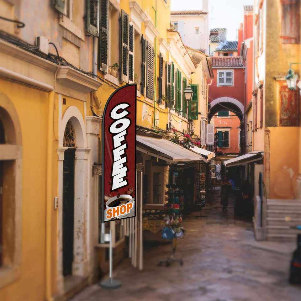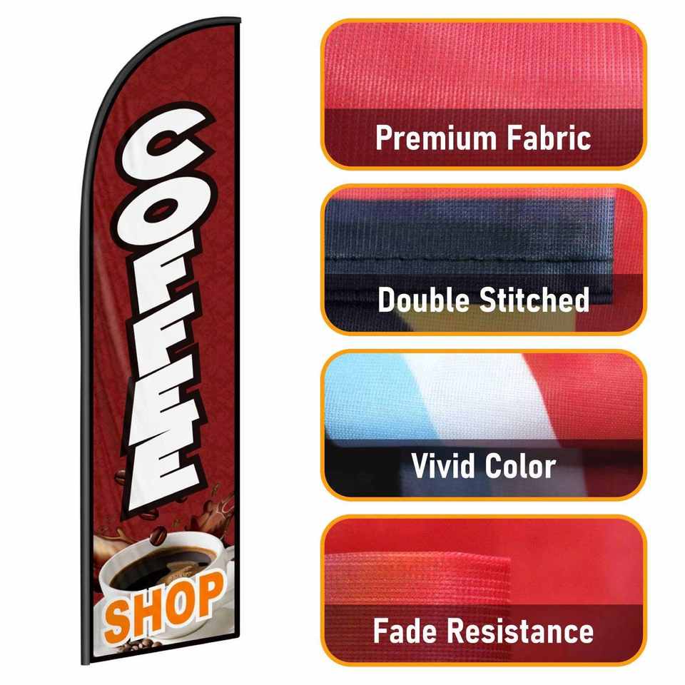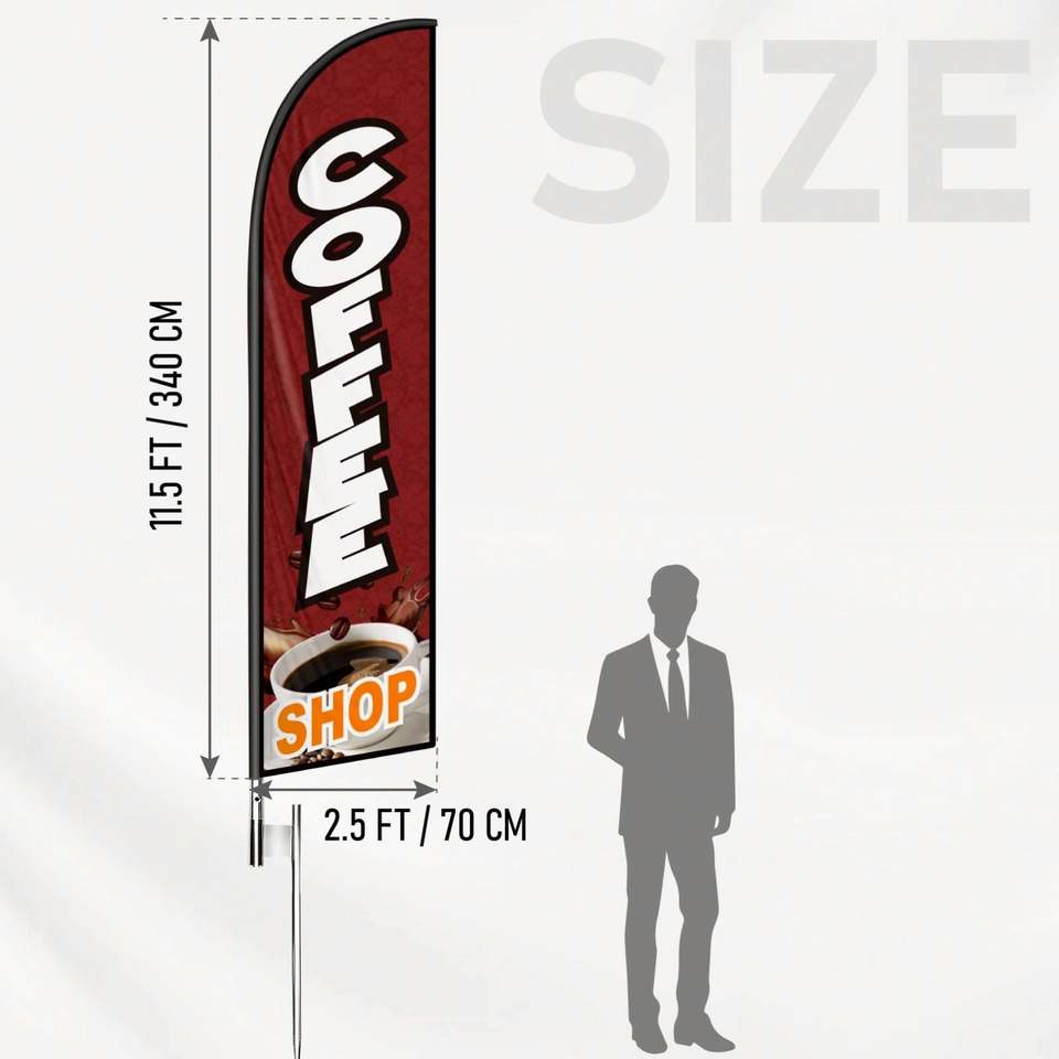 ธงขนนกคุณภาพสูงขนาด 2.5*11.5 ฟุต สำหรับร้านกาแฟ ธงชายหาดสำหรับงานปาร์ตี้ริมชายหาดและการโฆษณาส่งเสริมการขาย