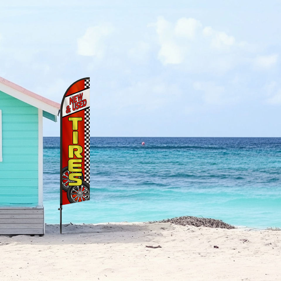 ยางรถยนต์มือสองขนาด 2.5*11.5 ฟุต คุณภาพสูง ธงขนนกแบบกำหนดเอง ธงชายหาดสำหรับงานปาร์ตี้ริมชายหาดและโปรโมชั่นโฆษณา