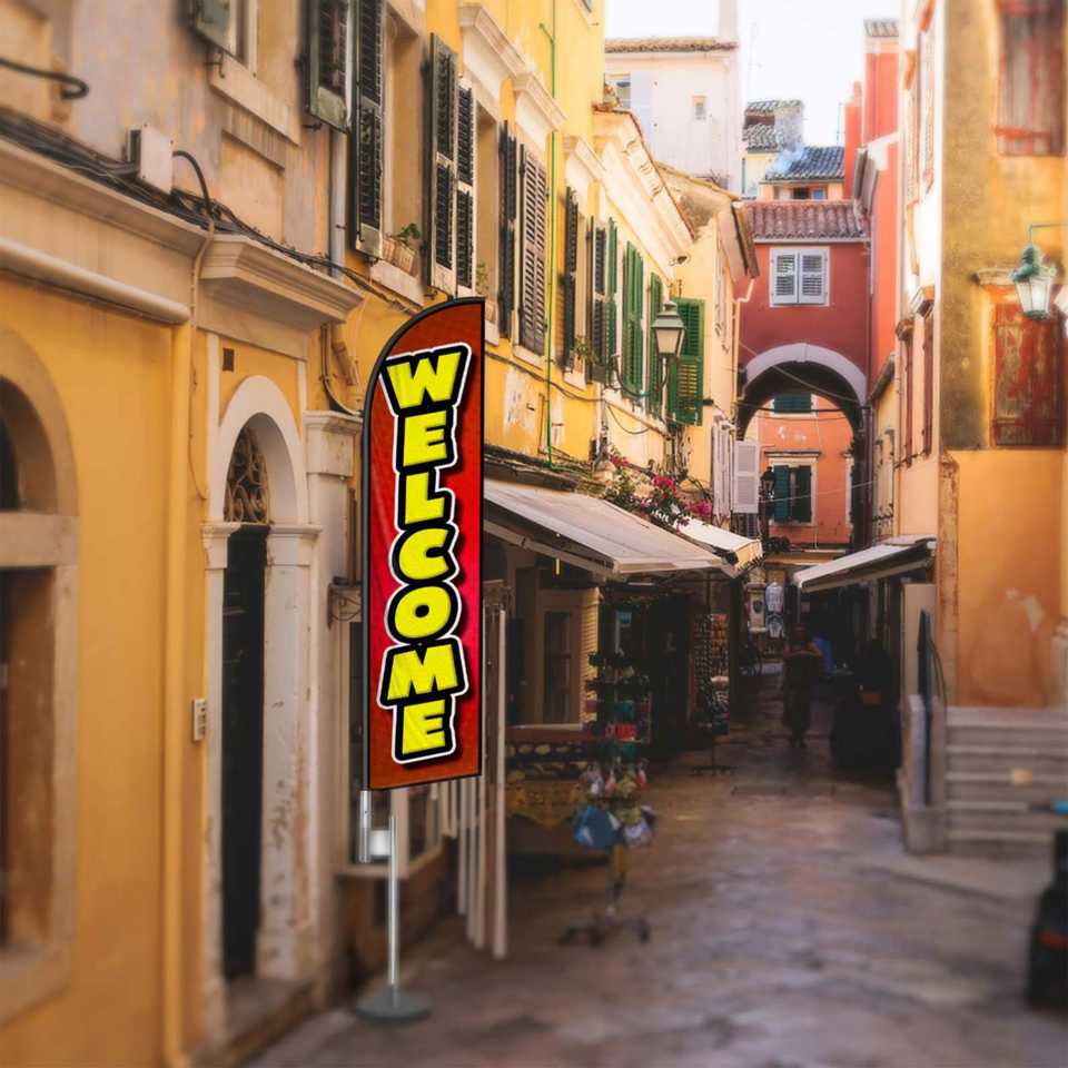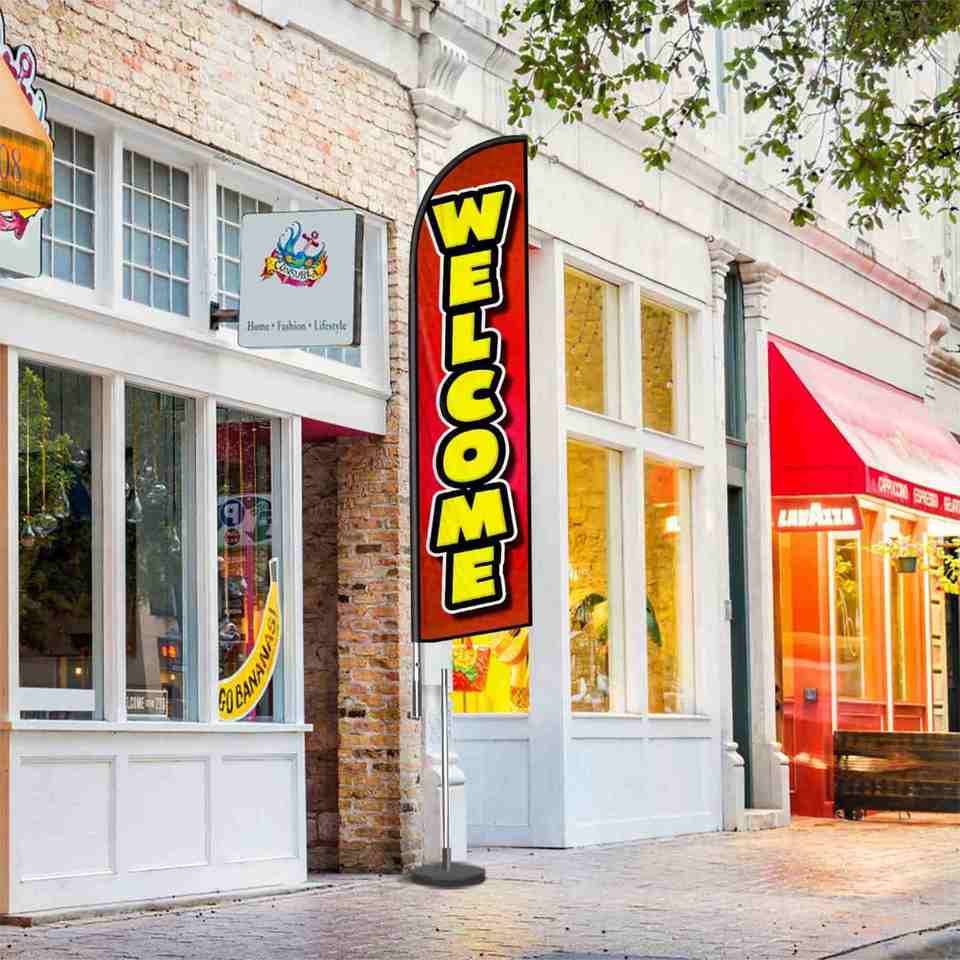 ธงขนนกแบบกำหนดเองคุณภาพสูงขนาด 2.5*11.5 ฟุต สำหรับงานปาร์ตี้ริมชายหาดและการโฆษณาประชาสัมพันธ์