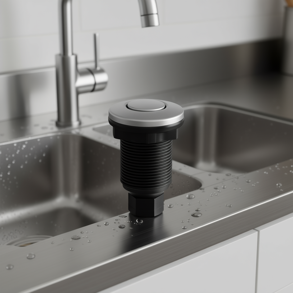 ชุดสวิตช์ลม 2.5 นิ้ว สีเงินขัดเงา สำหรับเครื่องกำจัดขยะเศษอาหาร