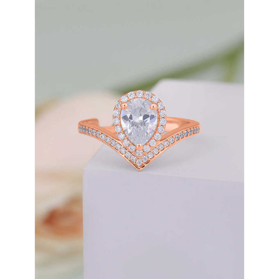 2.5กะรัตเพชรอเมริกันฉีกแหวนโรสโกลด์ทรงลูกแพร์พร้อมชุบโรเดียมเครื่องประดับทองคำสีเหลืองสำหรับผู้หญิง