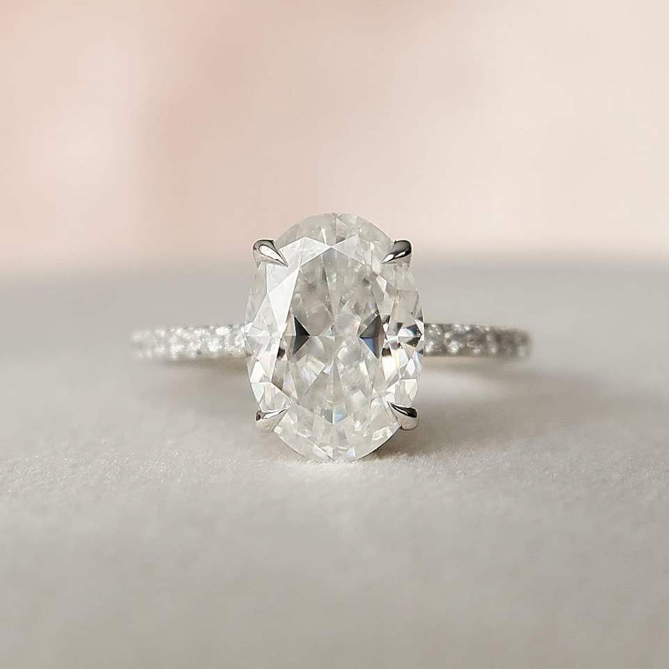 แหวนหมั้นเพชรเม็ดเดี่ยวทรงรี2.5กะรัตประดับเพชรอัญมณีสีทอง14K เครื่องประดับงานแต่งที่ชัดเจน VVS