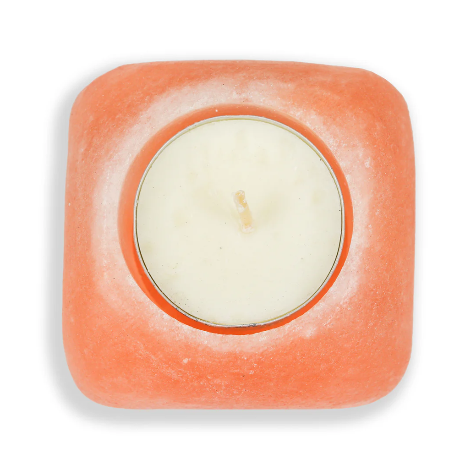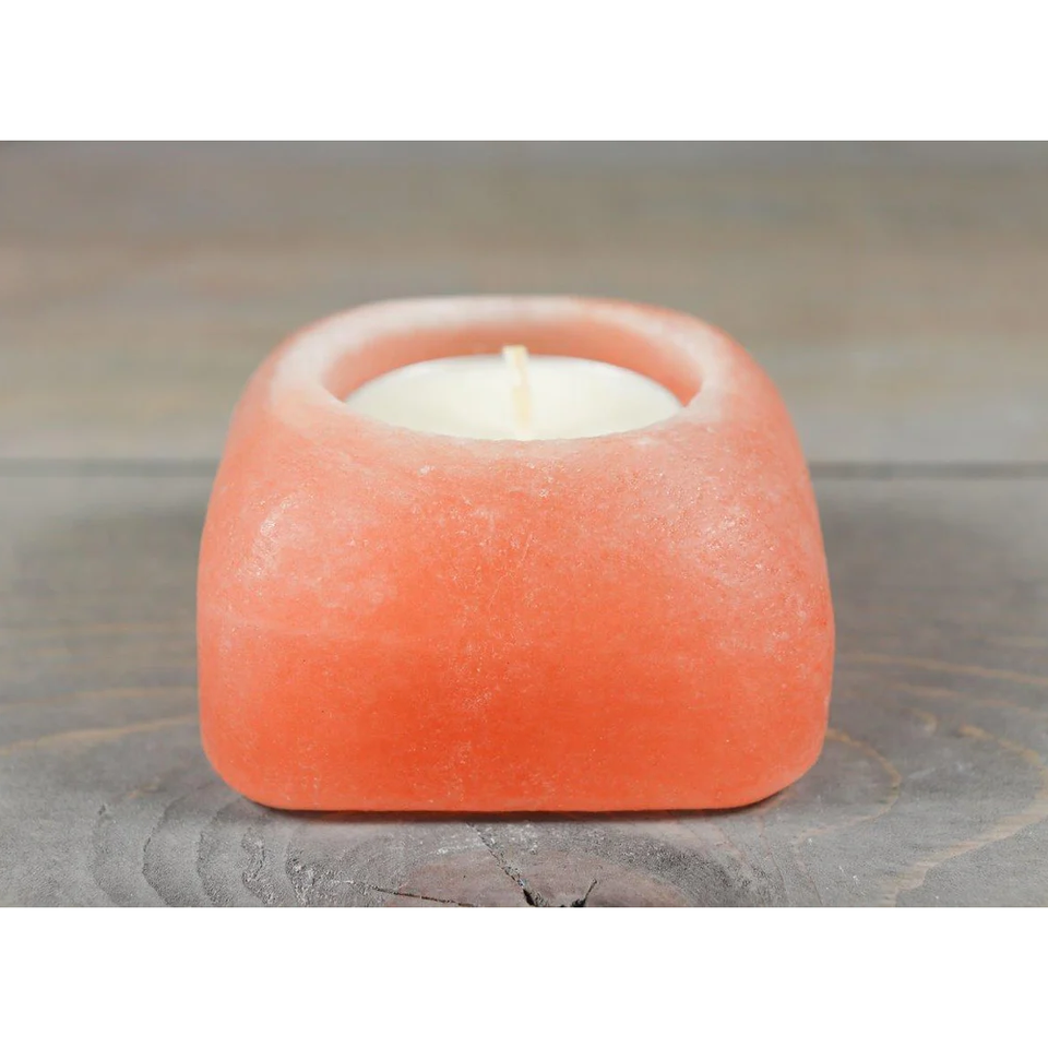 เทียนทีไลท์ทรงสี่เหลี่ยมจัตุรัสเกลือหิมาลัยขนาด 2.5 นิ้ว | เกลือสีชมพูธรรมชาติ ของตกแต่งบ้านและสปา แนวทางการบำบัดแบบโฮลิสติกเพื่อสุขภาพ