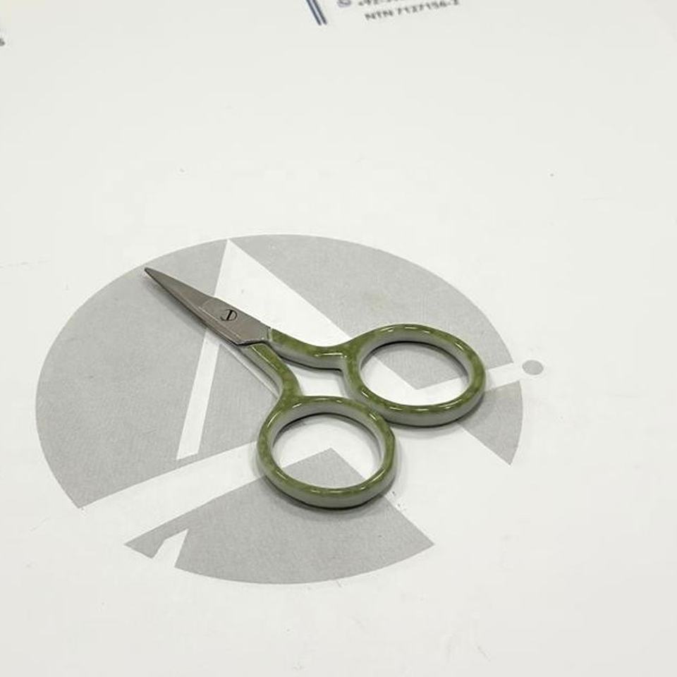กรรไกรครัวเรือนขนาด 2.5 นิ้ว พร้อมงานปักลายแบบกำหนดเอง หุ้มด้วยสีดำเคลือบเงา ปลายแหลม สำหรับงานเย็บคุณภาพสูง