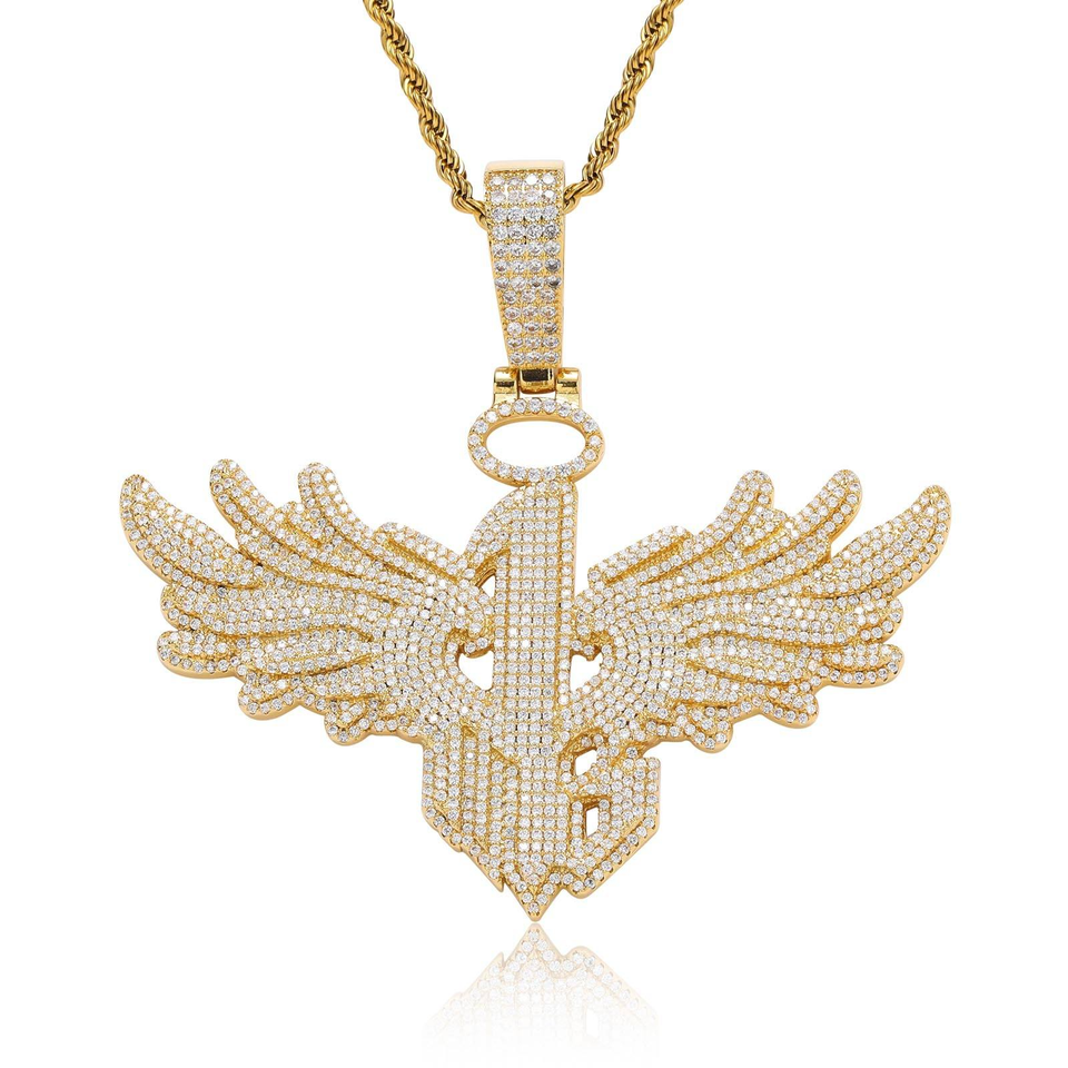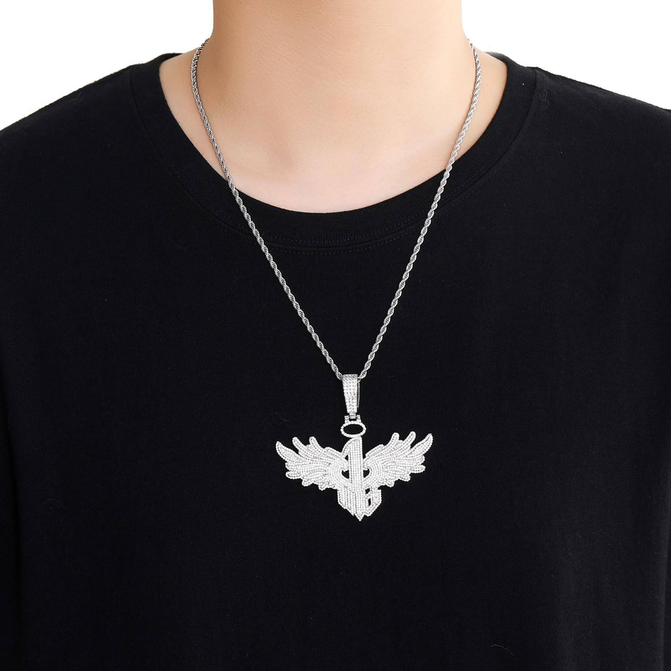 2.5 Inch Luxury Hip Hop Angelic Cross Pendant Necklace 925 Silver Round Cut Moissanite Diamond Winged Sword Statement Piece