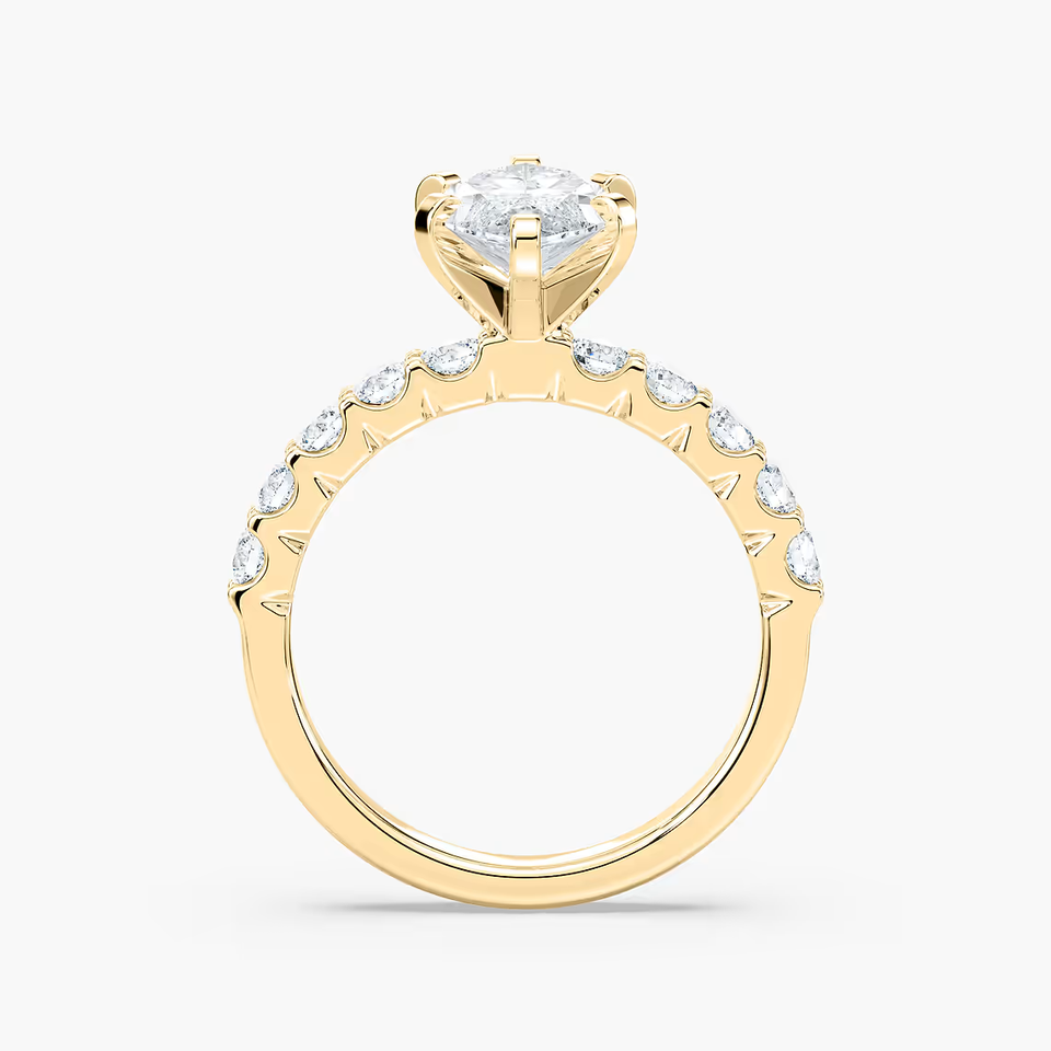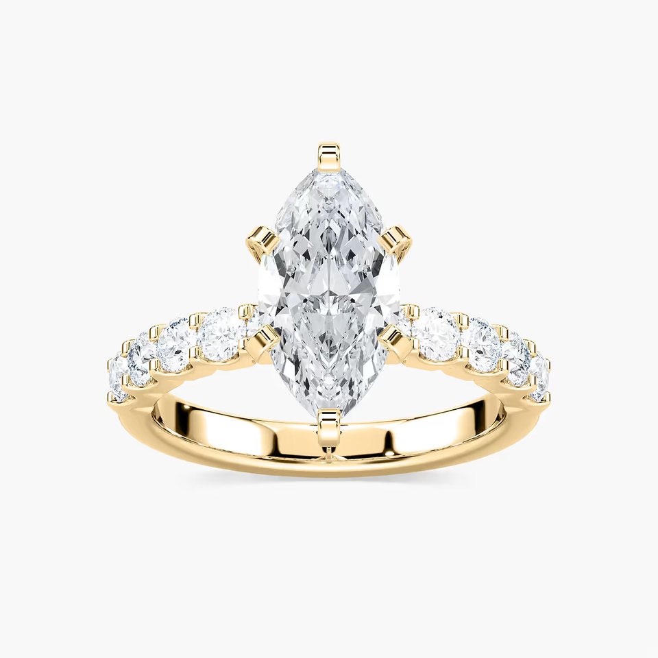 แหวนหมั้นเพชรทรงมาร์คีส์ 2.50 กะรัต เพชรเพาะเลี้ยง ได้รับการรับรองจาก IGI ตัวเรือนทองคำแท้ 14K ประดับเพชรแบบพาเว่ แหวนแต่งงานสำหรับผู้หญิง