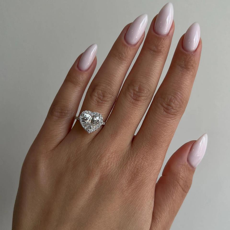 แหวนหมั้นเพชรทรงหัวใจ 2.50 กะรัต ผลิตในห้องปฏิบัติการ ประดับเพชรรอบด้าน แหวนทองคำขาว 18K สองสี พร้อมใบรับรอง IGI