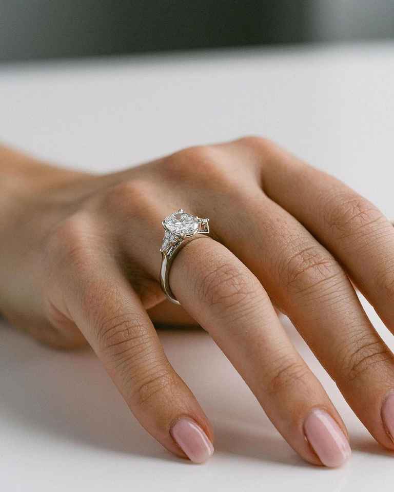 แหวนเพชรทรงรี 2.50 กะรัต สไตล์อาร์ตเดโค แหวนหมั้นสำหรับผู้หญิง แหวนพลอยประกายระยิบระยับ แหวนเพชรเม็ดเดี่ยว เงินแท้ 925 ทองคำ 18K