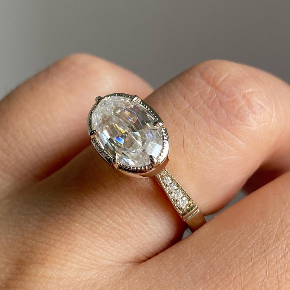 2.50กะรัตขั้นตอนการตัดวงรีห้องแล็บปลูกเพชรอาร์ตเดคโคสไตล์แหวนหมั้นแหวนทองขาว14K