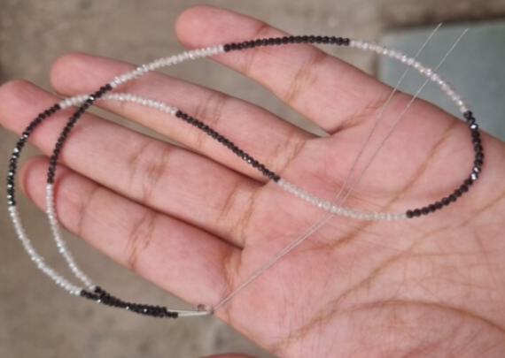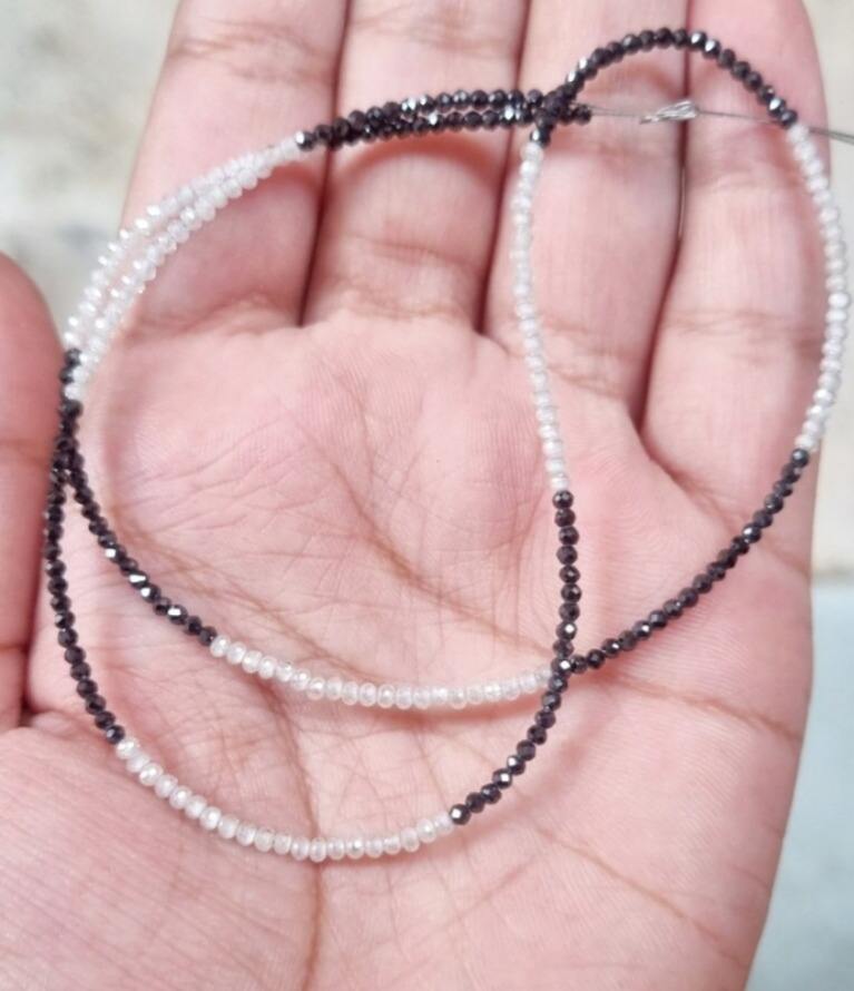 ลูกปัดมอยส์ซาไนต์สีขาวและดำขนาด 2.50 มม. ยาว 16 นิ้ว ใช้สำหรับทำสร้อยคอ