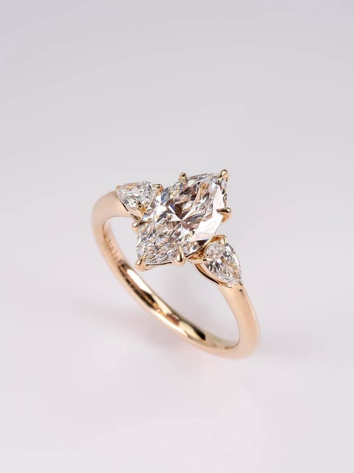 แหวนหมั้นเพชรทรงมาร์คีส์หรูหรา 2.50 กะรัต ทอง 18K/14K/10K แหวนเจ้าสาวสามเม็ด แหวนเพชรแบบกำหนดน้ำหนักได้ เครื่องประดับคุณภาพสูง ขายส่ง