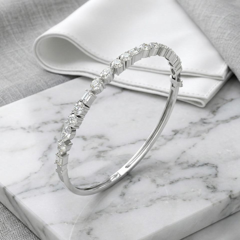 กำไลข้อมือเพชรทรงกลมเจียระไนแบบบริลเลียนท์ 2.500 กะรัต ชุบทอง 10k ประดับเพชรแล็บโกรว์ ดีไซน์หรูหรา