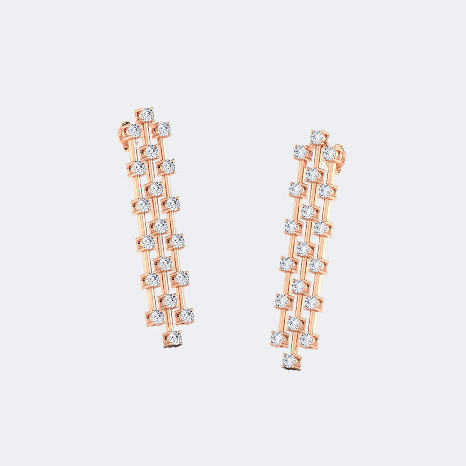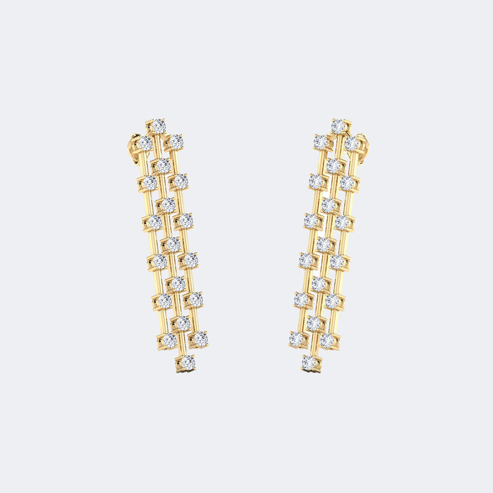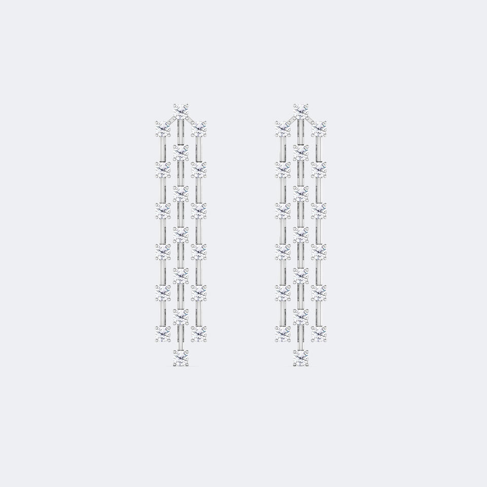 2.50CTW, รูปทรงกลม, แบบหนามเตย/แท่ง, ต่างหูทรงหยดน้ำยาว / ต่างหูทรงเส้นตรง