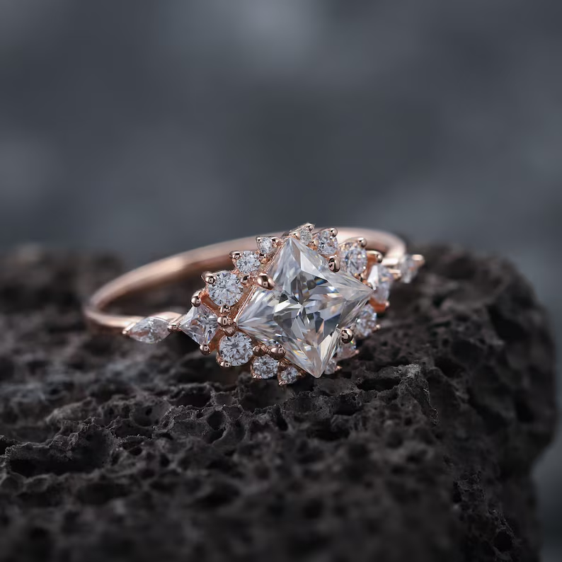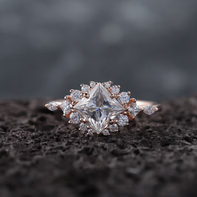 เจ้าหญิง VS1 2.50CTW ตัดเป็นก้อนเพชรที่โตแล้ว14K เครื่องประดับทองชั้นดีแหวนสำหรับงานแต่งงานที่ให้คำมั่นสัญญาครบรอบแต่งงานของบุคคลที่โรแมนติก