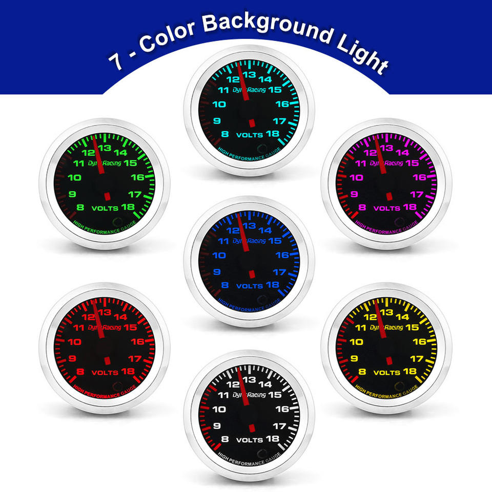 โวลต์มิเตอร์รถยนต์ขนาด 2 นิ้ว 52 มม. พร้อมไฟพื้นหลัง LED 7 สี แบบเข็ม 12V จอ LCD แสดงผล 8~18V สภาพใหม่