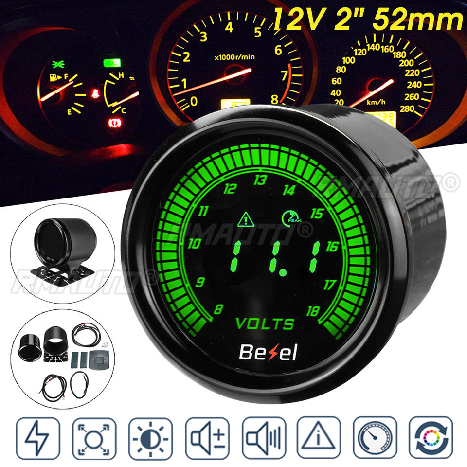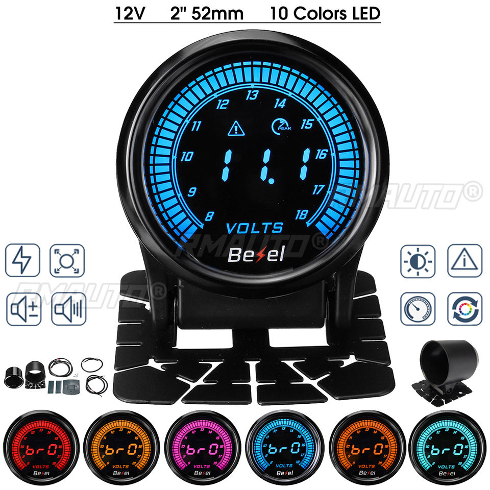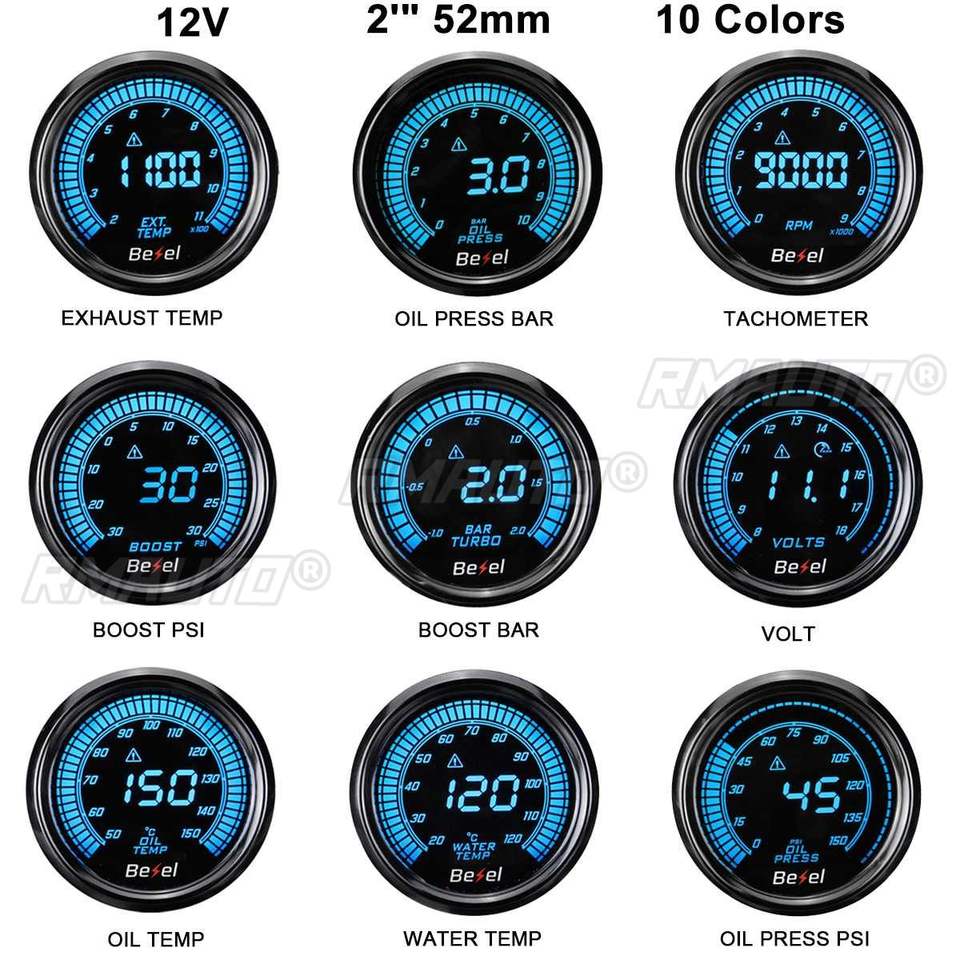 เกจวัดอุณหภูมิน้ำมันเครื่อง/แรงดันน้ำมันเครื่อง/แรงดันไฟฟ้า/รอบเครื่องยนต์/บูสต์/PSI/BAR/AFR/EGT แบบดิจิตอล LED ขนาด 2 นิ้ว 52 มม. สำหรับรถยนต์ พร้อมฐานยึด