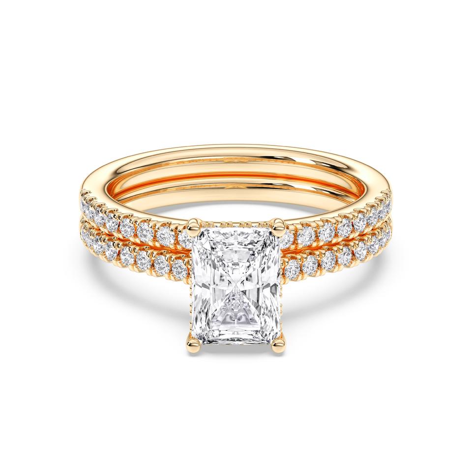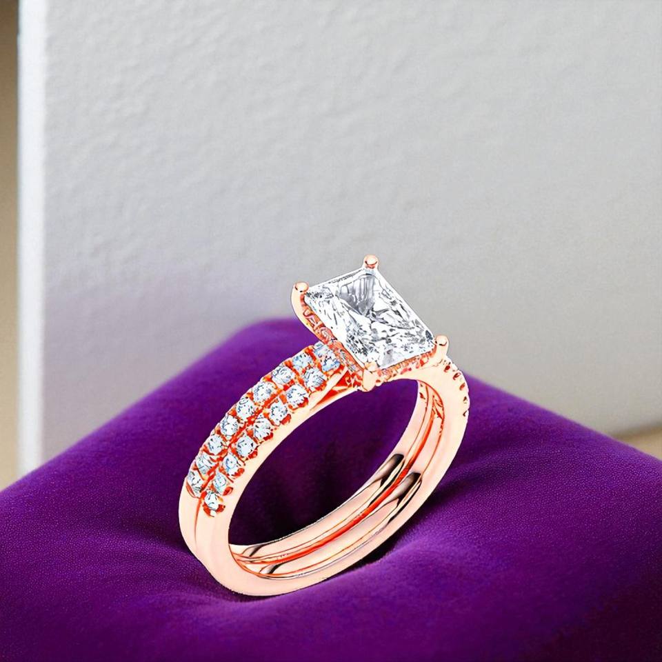 แหวนหมั้นเพชรมอยส์ซาไนต์ทรงกลม2.55พร้อมศูนย์ทองคำ2.00กะรัตพร้อมสายรัดที่เข้ากัน