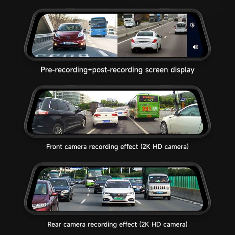 กล้องบันทึกวีดีโอติดรถยนต์ 2.5K DVR พร้อมกระจกมองหลังแบบเลนส์คู่ หน้าจอสัมผัส บันทึกภาพกลางคืน