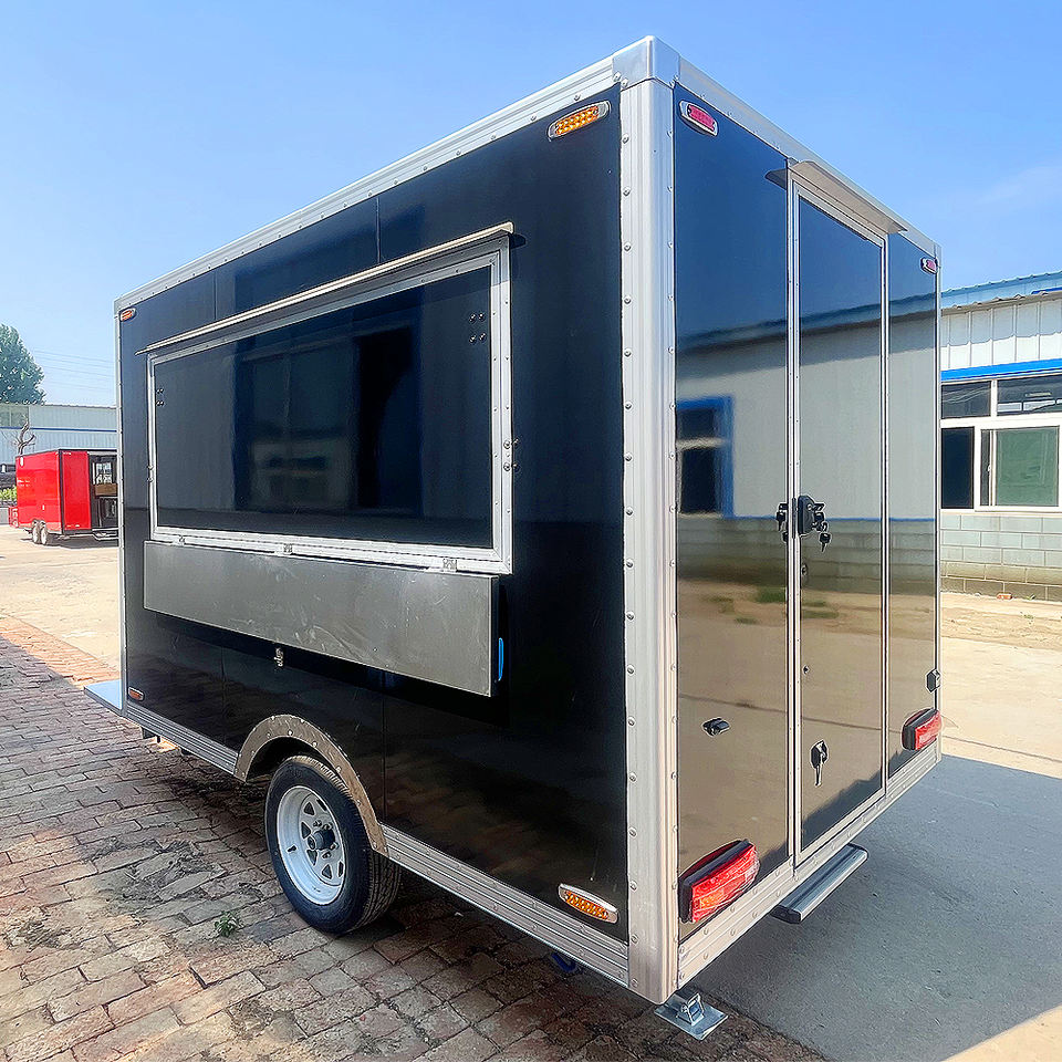 รถเข็นบาร์กาแฟเคลื่อนที่2.5ม. รถเทรลเลอร์เคบับขนมหวานพิซซ่ารถขายอาหารพร้อมครัวเต็มรูปแบบ