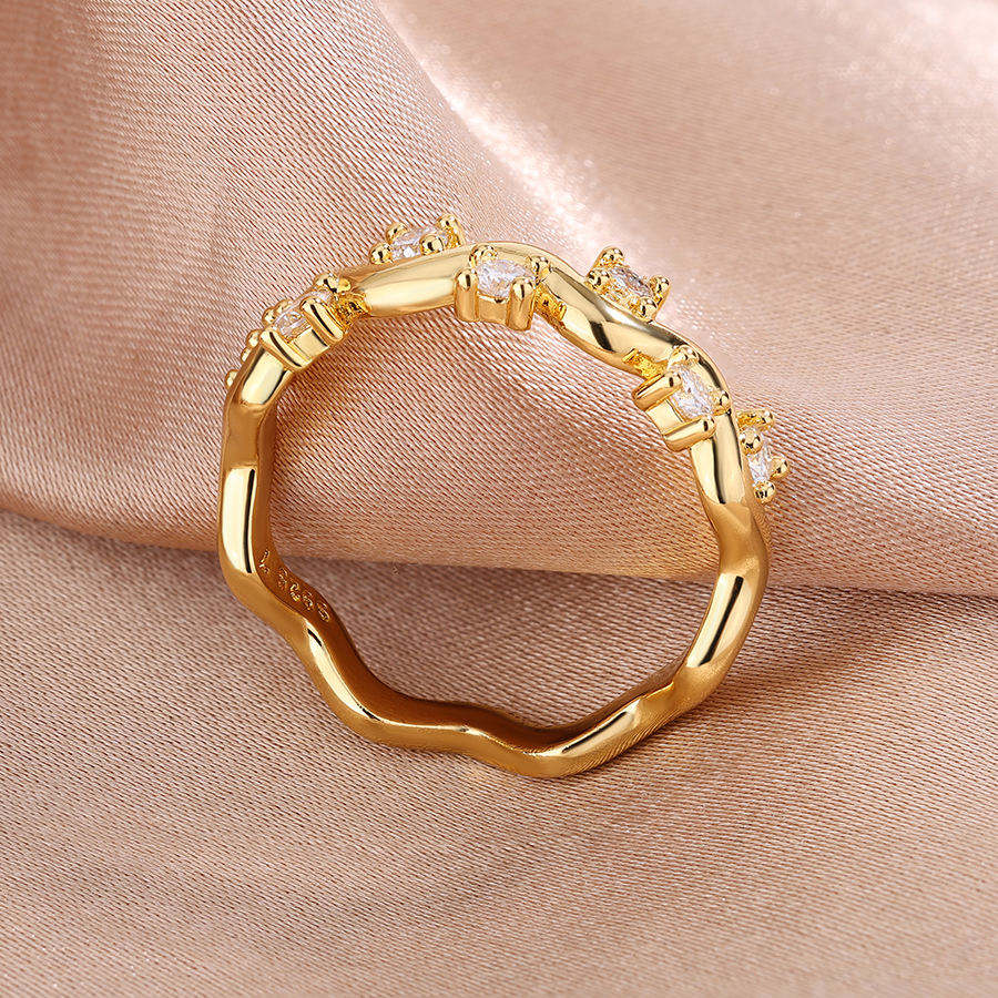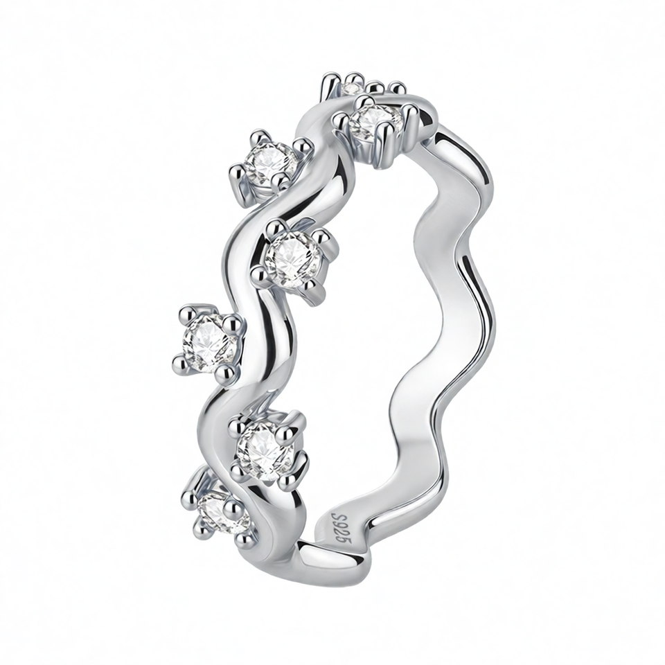 แหวนแต่งงานทรงคลื่นประดับมอสซาไนต์ 2.5 มม. สี D ระดับ VVS สำหรับผู้หญิง แหวนเงินแท้ S925 ดีไซน์ทันสมัย เหมาะสำหรับงานหมั้นและวันครบรอบ