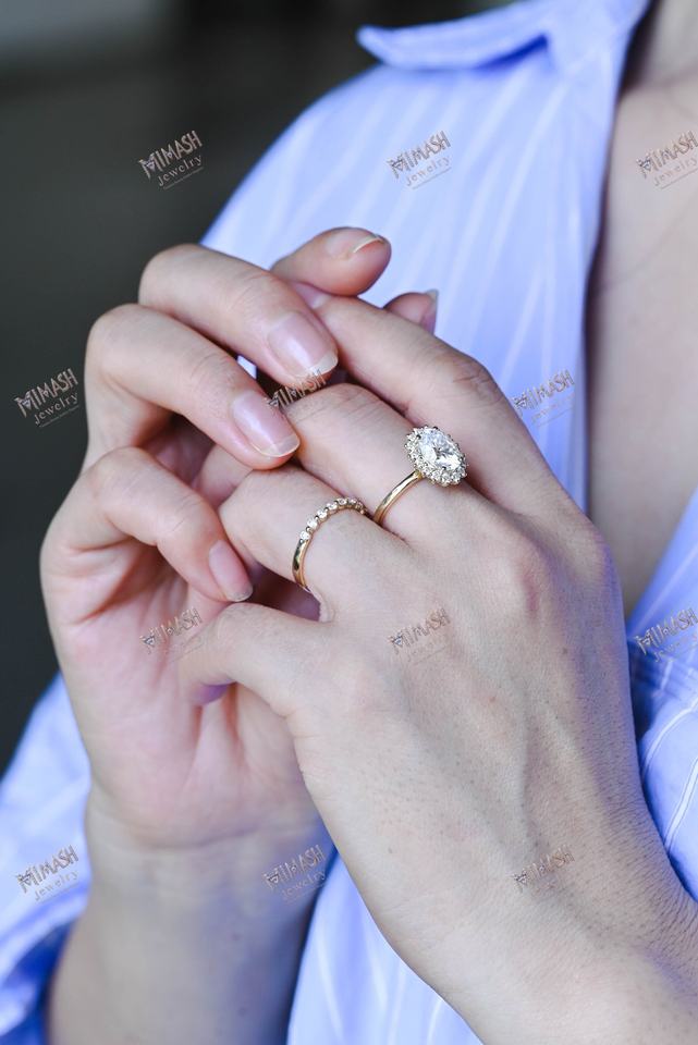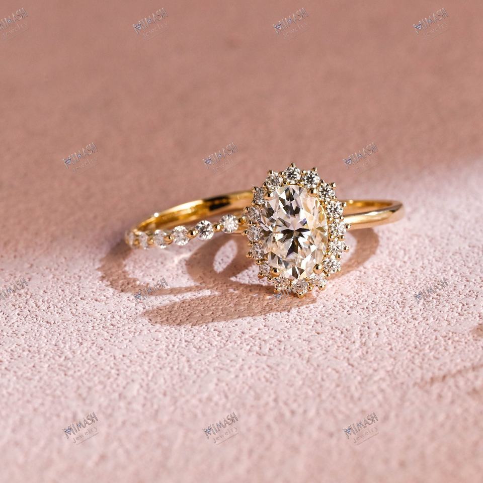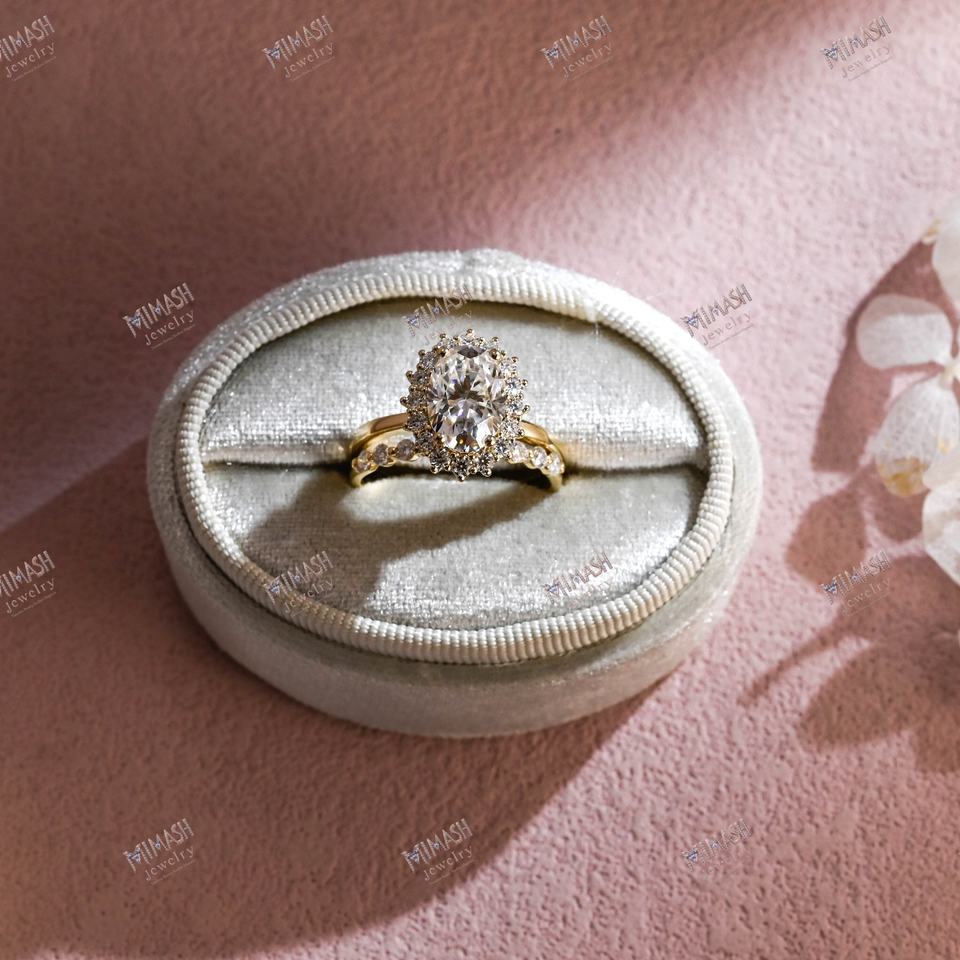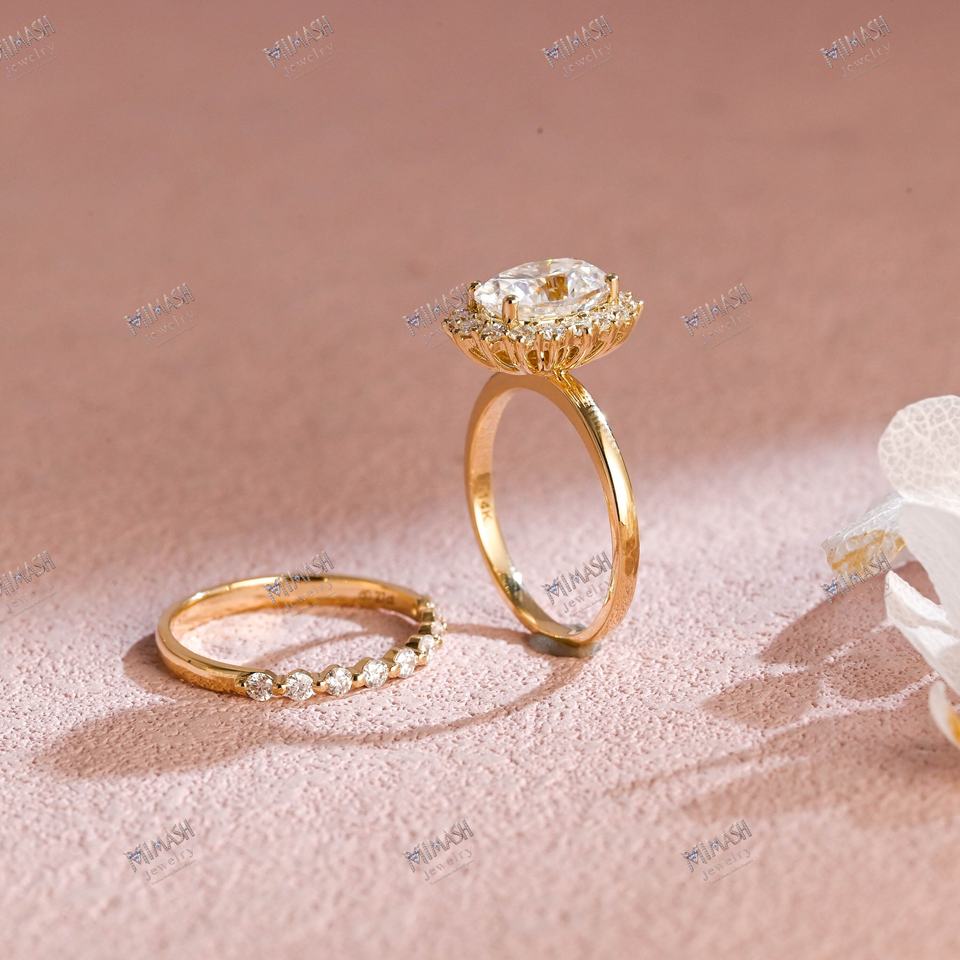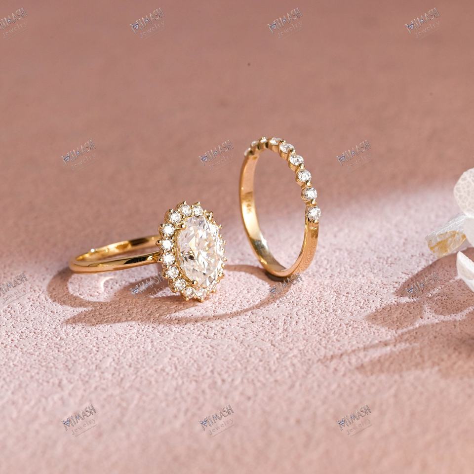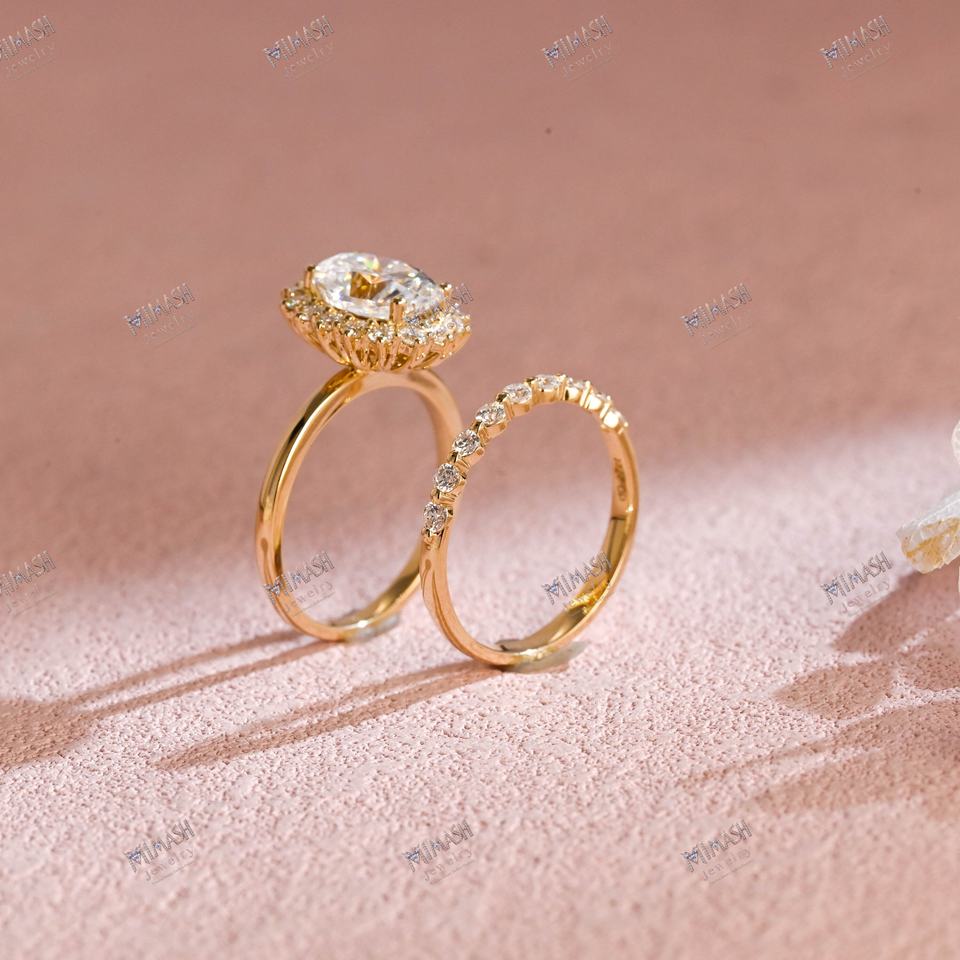 แหวนมอยส์ซอไนต์ทรงรี2.5ct พร้อมแหวนเข้าคู่แบบครึ่งนิรันดร์ของขวัญเซ็ตสำหรับเจ้าสาวสุดหรูสำหรับเธอ