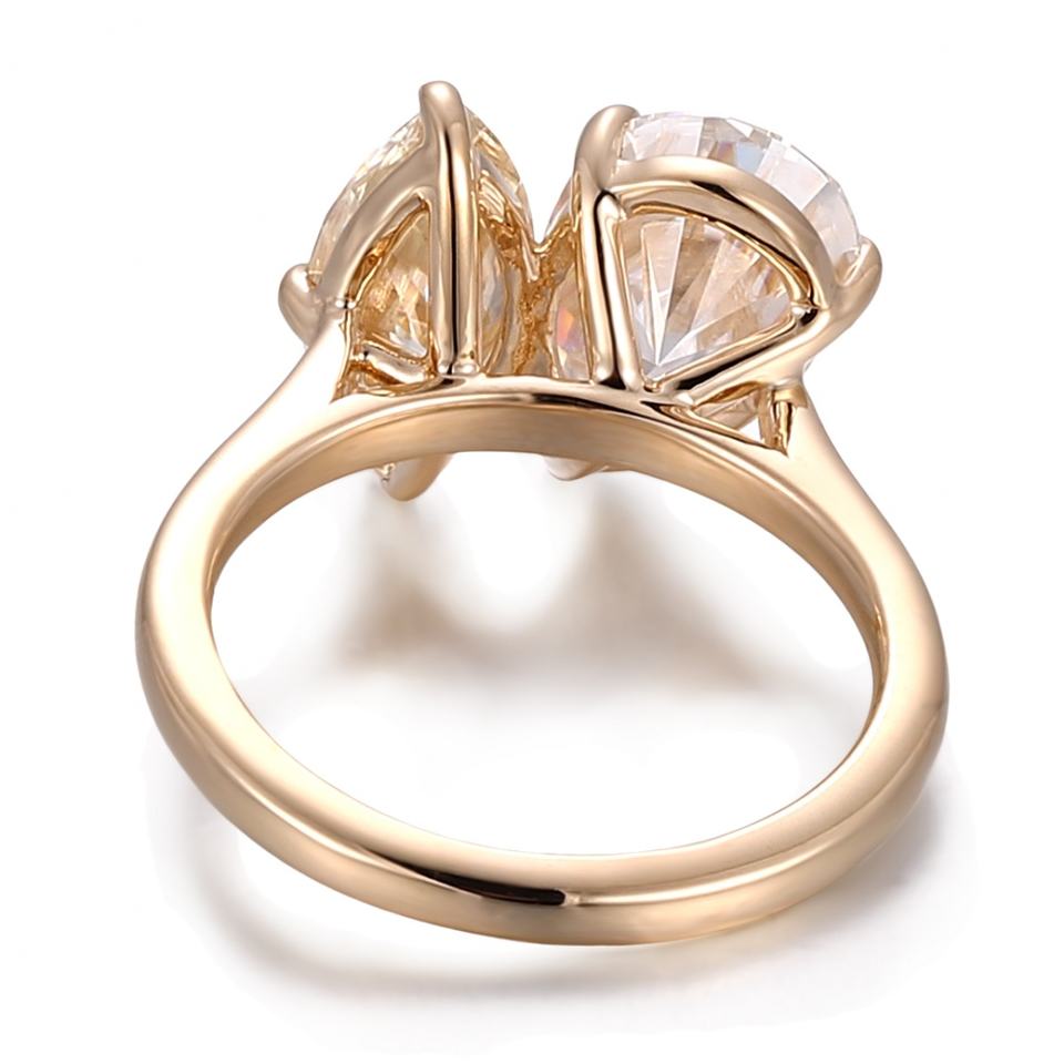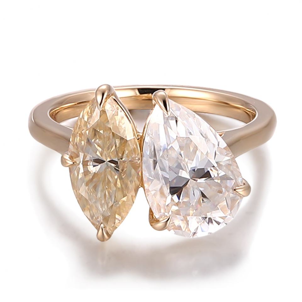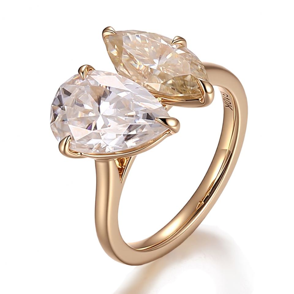 แหวนเพชรโมอิสซาไนต์ทรงลูกแพร์ 2.5 กะรัต สี DEF ความสะอาด VVS แหวนสองเม็ด ทองคำแท้ 18K 14K 10K สีเหลืองทอง ดีไซน์เนอร์แหวนหมั้นสำหรับผู้หญิง