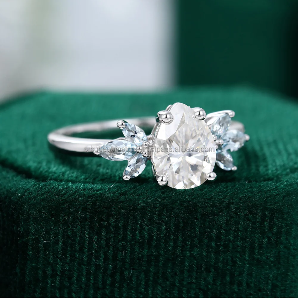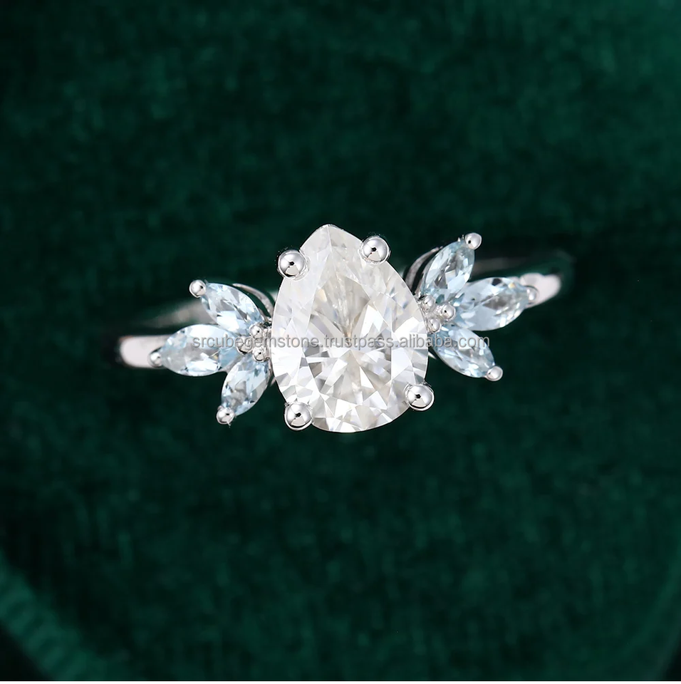 2.5ctw 5*7 Pear & 2.5*5 Marquise Moissanite Diamond Engagement Ring Elegant S925 Silver with Side Stone for Wedding or Gift