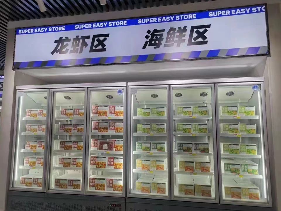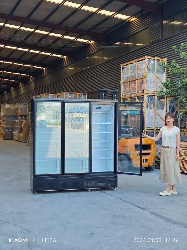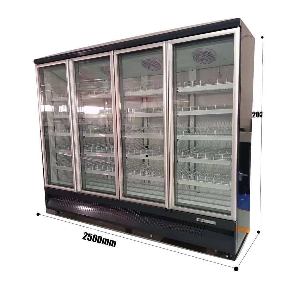 ตู้แช่แข็งแสดงผลเชิงพาณิชย์4ประตูกระจก1450L ไร้น้ำค้างแข็งการควบคุมดิจิตอลขนาดใหญ่2.5เมตร