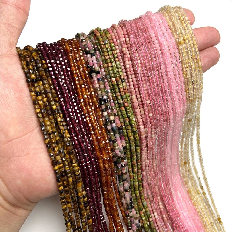 ลูกปัดคริสตัลเหลี่ยมเพชรพลอยสี่เหลี่ยมขนาดเล็ก2.5มม. ลูกปัดหินอัญมณีทรงลูกบาศก์ทรงหลวมลูกปัดหินธรรมชาติสำหรับอุปกรณ์ DIY